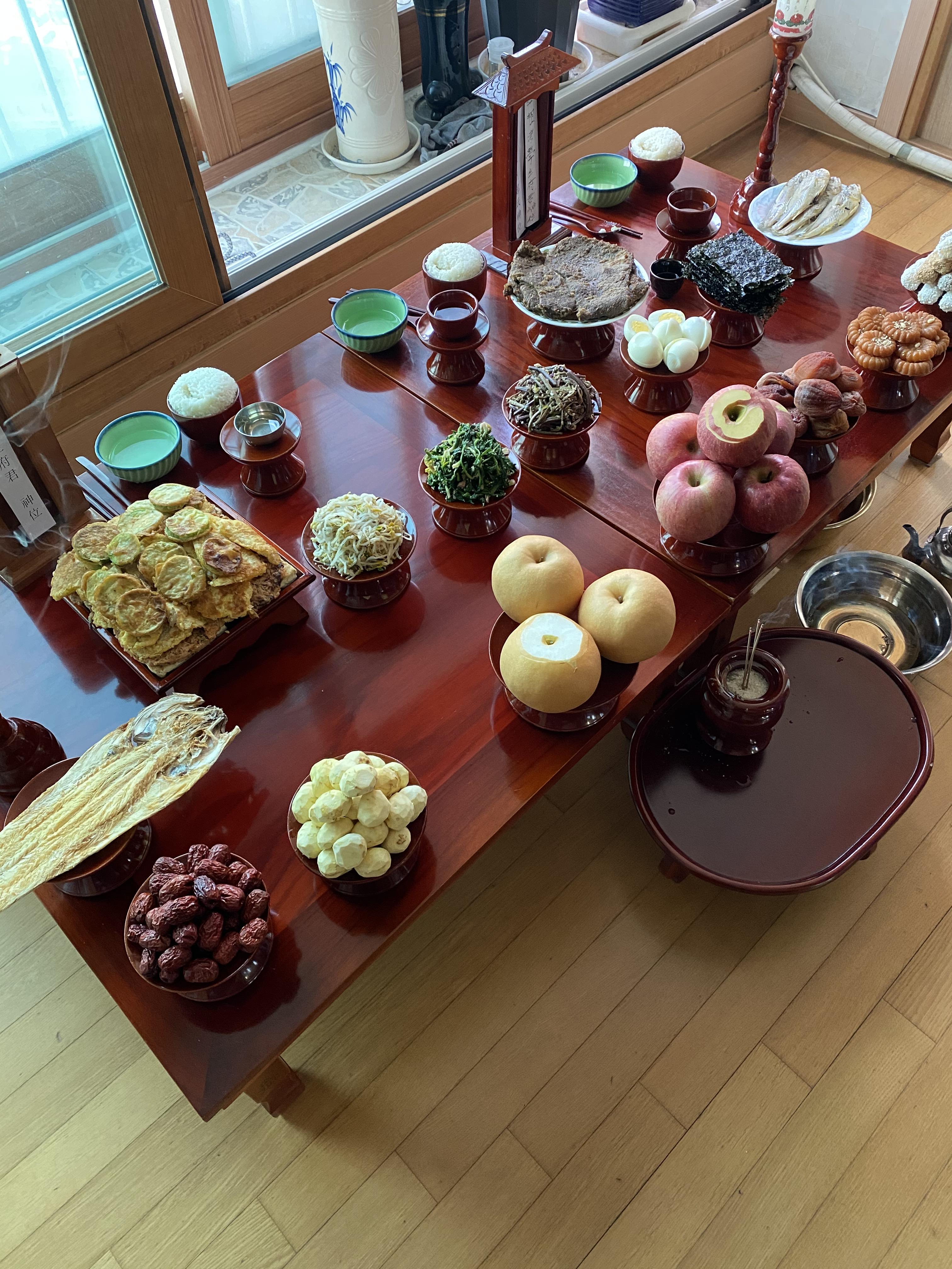 연휴 첫날 조촐하게 음식을 준비해놓고, 설 당일인 오늘 아침 차례를 지냈습니다.