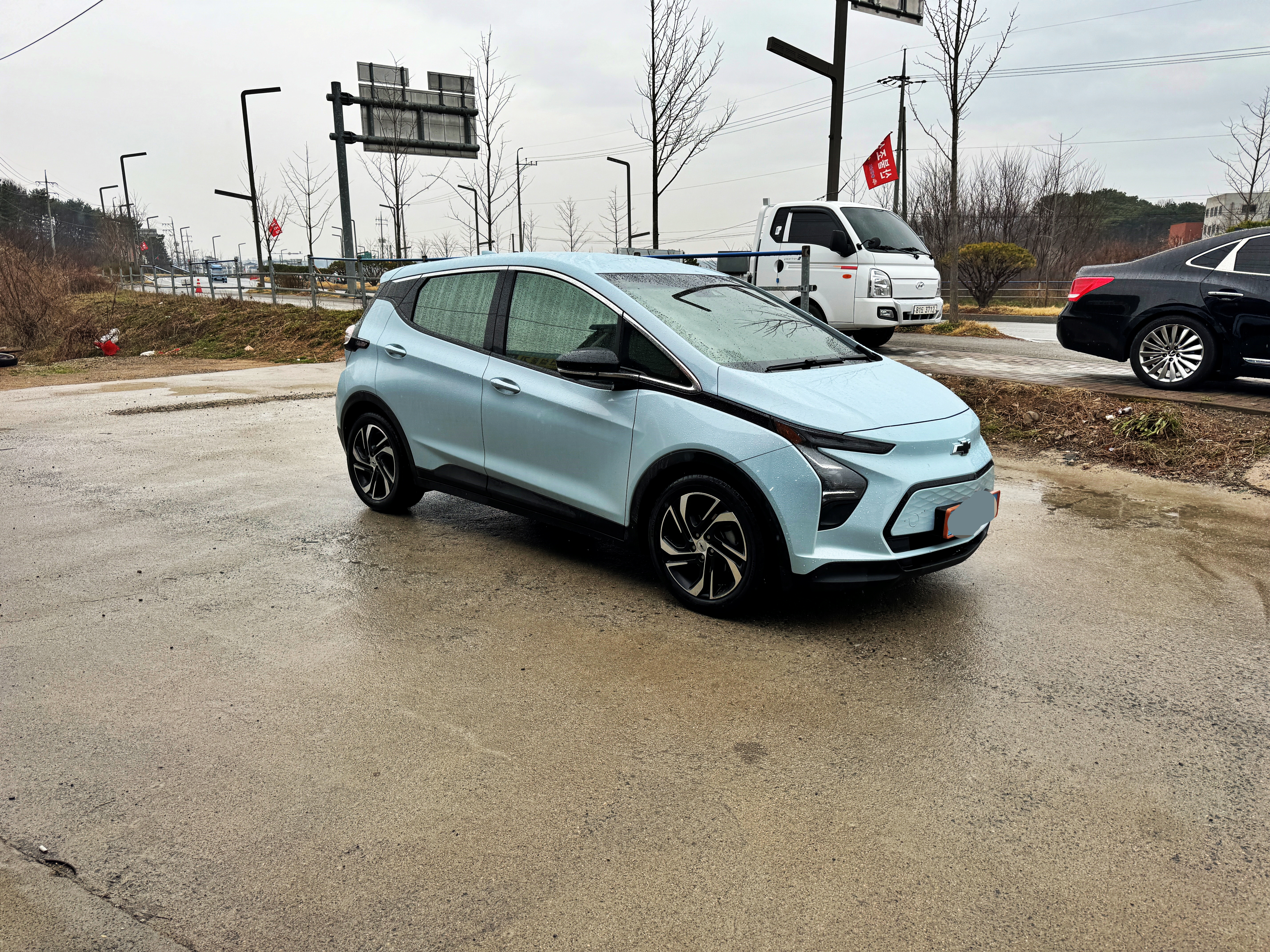 예전에 젠트라 3도어 타고도 왔었죠. 점심시간이긴 했지만 접수는 가능하다네요. 근데 전기차인걸 보시곤 전기차는 접수 자체가 안된다고 합니다. 전기차 구동계와 관련된 부분도 아닌데요. 그래서 결국은 다시 홍성으로 돌아와서 전기차 수리가 가능한 대우 홍성 서비스센터로 향합니다. 현대는 작은 블루핸즈에서도 배터리나 동력계통이 아니라면 다 만져주는데 참 대우스럽습니다. 자칭 미제 고오급차 쉐보레. 대우 전기차를 타는 사람들은 간단한 경정비도 전기차 수리가 가능한 곳으로 가야 하는군요.