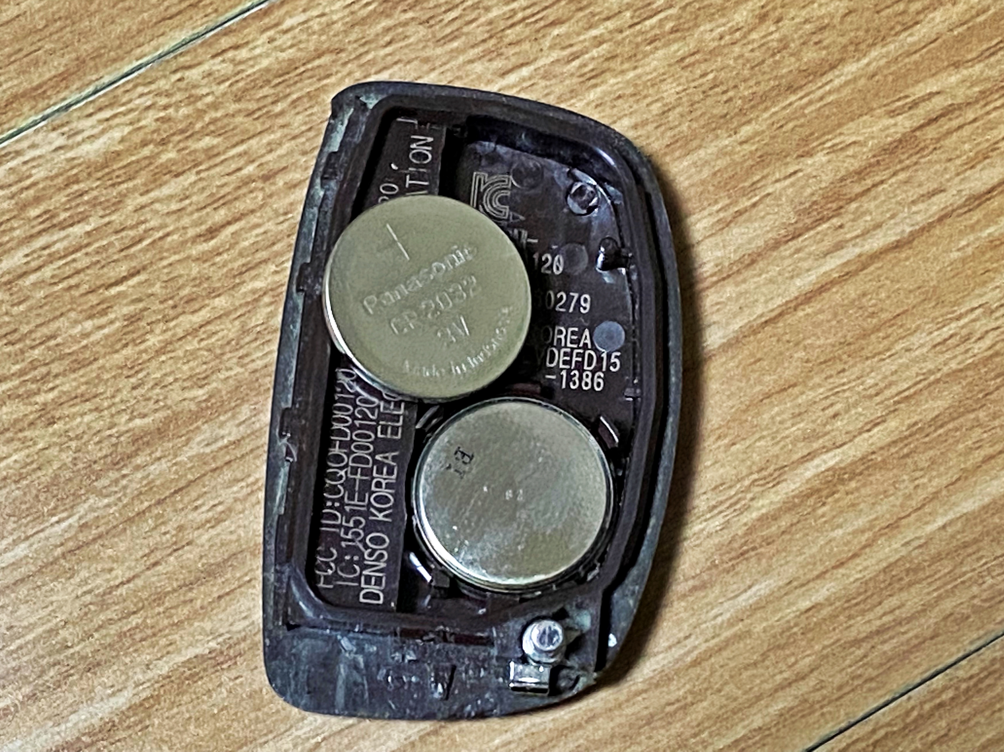 3V 배터리, 혹은 동전형 배터리나 시계 배터리라 부릅니다. 예전에는 주로 수은전지였지만 요즘은 수은이 들어간 제품은 찾기 어렵고 대부분 리튬이온 배터리네요. 꼭 차량 리모컨키용 배터리가 아니더라도 2032 규격의 배터리라면 상관없습니다. 동네 전파상이나 문구점 시계방에서도 취급하고 편의점에도 있습니다.