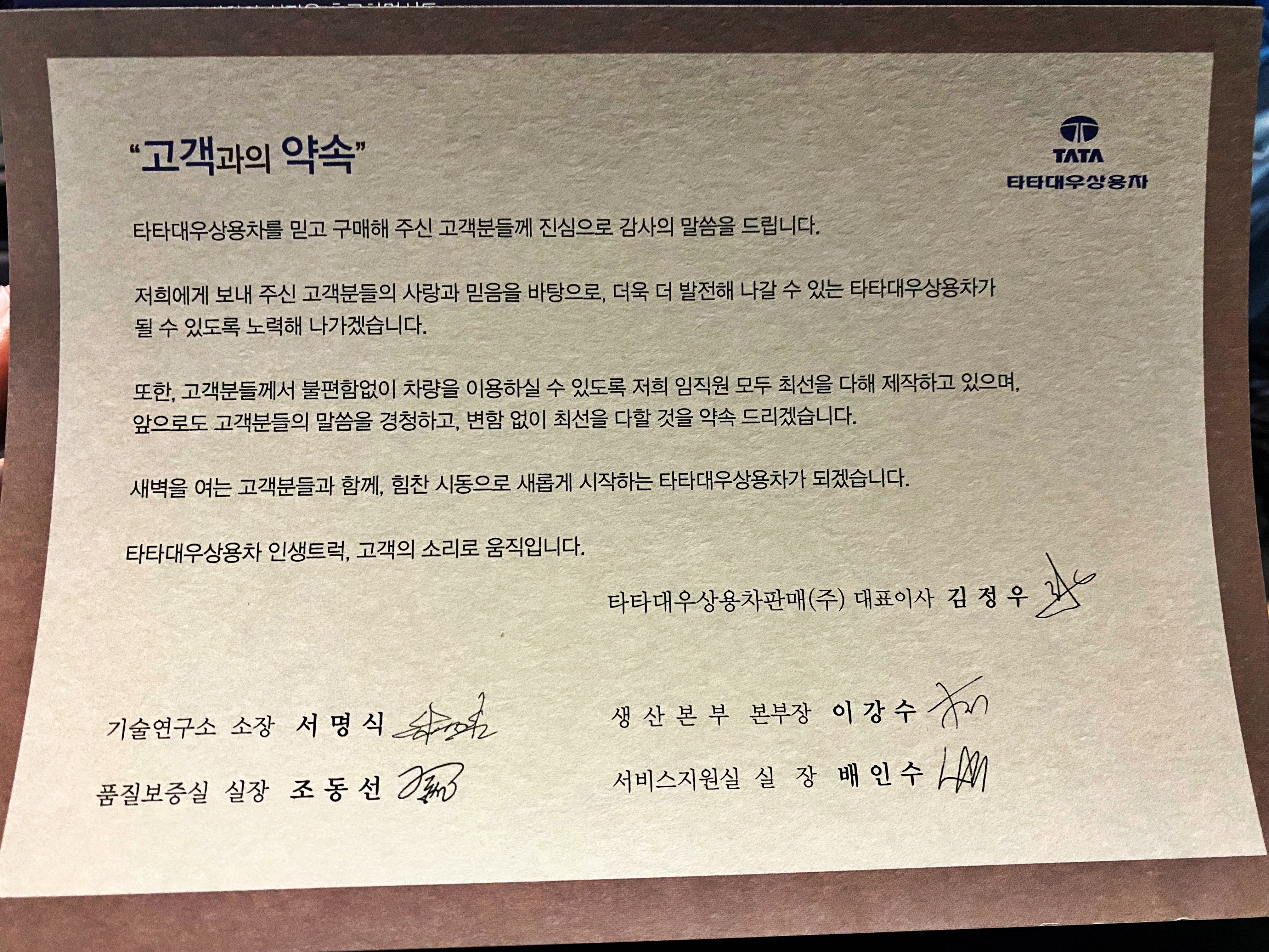 다시 한 번, 변함없이 저희 타타대우상용차를 믿고 구매해 주시는 고객 여러분들께 진심으로 감사드립니다.
