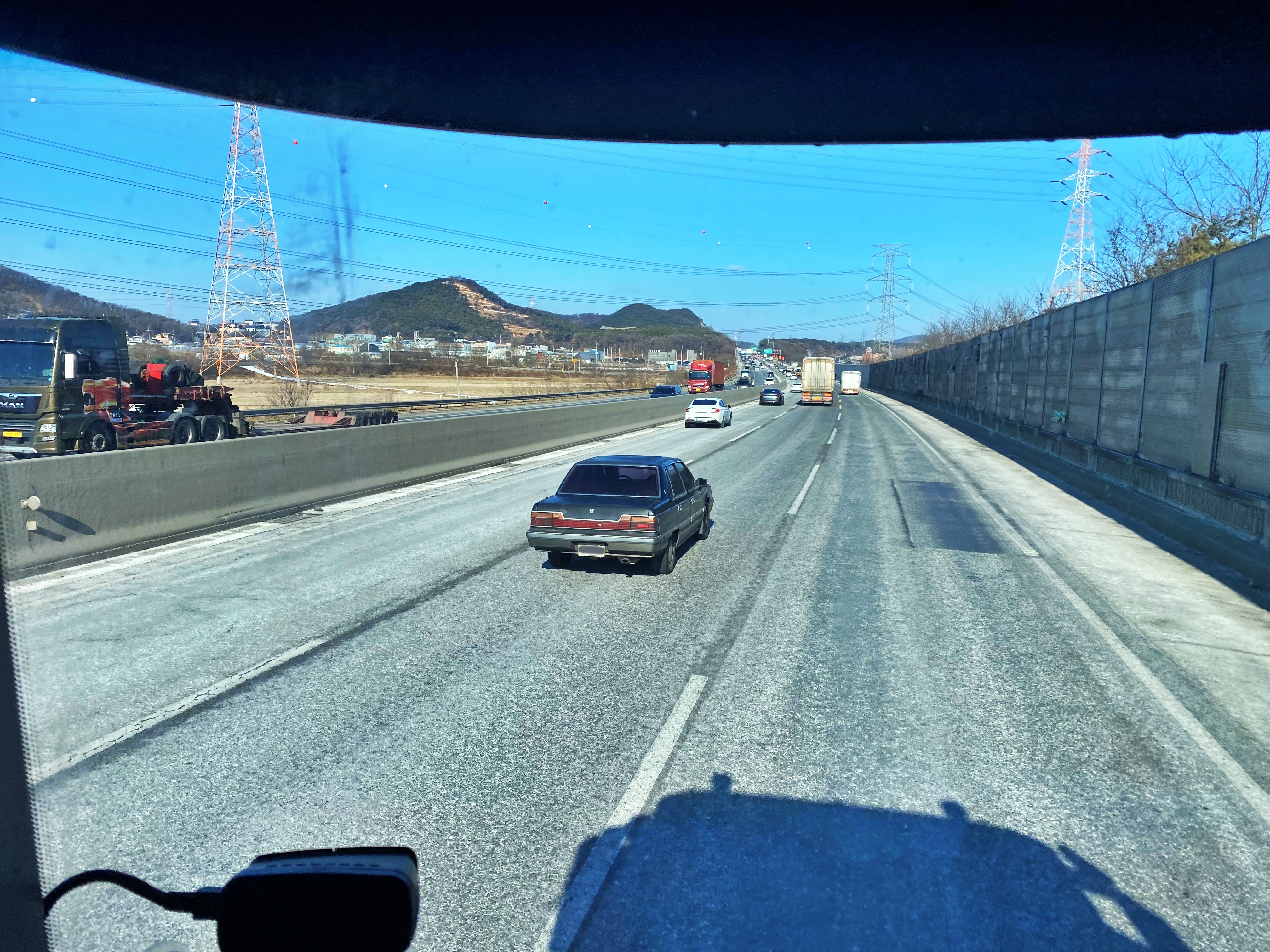전날 밤에 눈이 내려 도로 위 제설작업을 한다며 염화칼슘을 뿌려놓았고, 대부분 올드카를 소장하는 사람들은 이런 상태에서 차를 타고 나오는 경우는 거의 없지만 그럼에도 고속도로를 잘 달리고 있었습니다. 보니 뭐 전날 눈도 맞았고, 올라오면서 염화칼슘이 녹은 소금물도 맞고 달렸었네요.