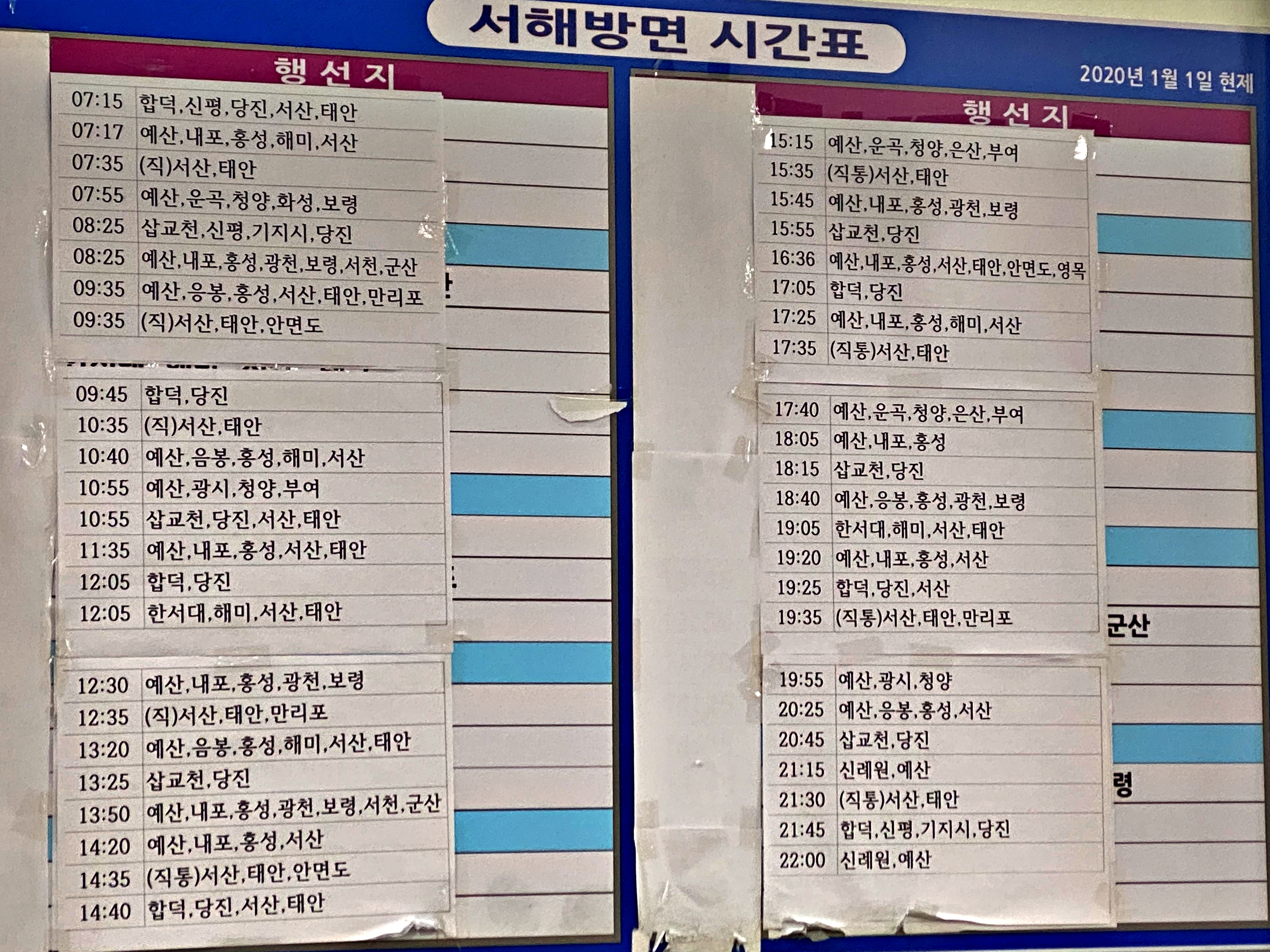 서해안 방면 시간표입니다.