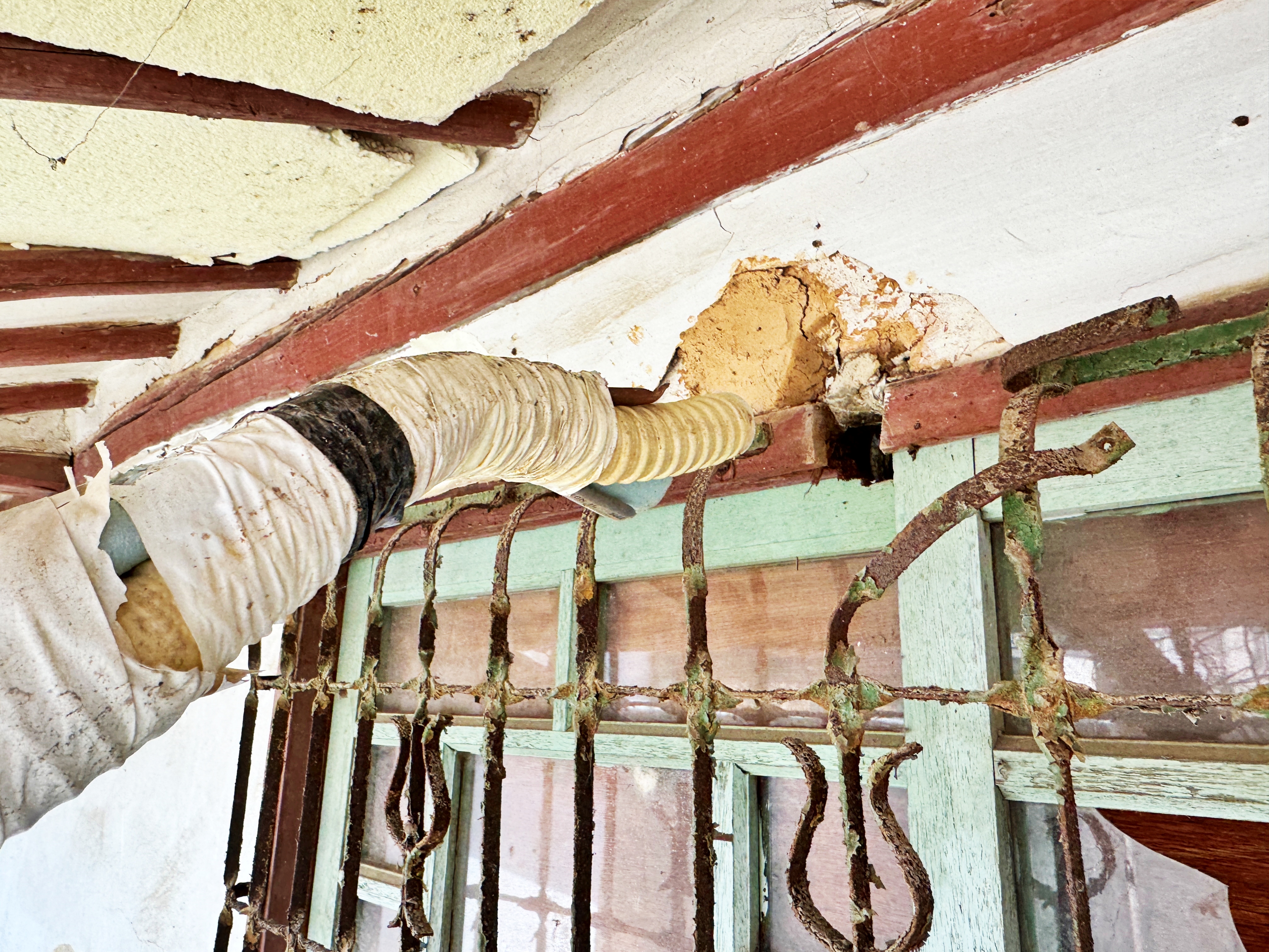 옛날에 지어진 흙집이라 흙벽 대신 사용하지 않는 문틀에 타공을 해뒀네요.