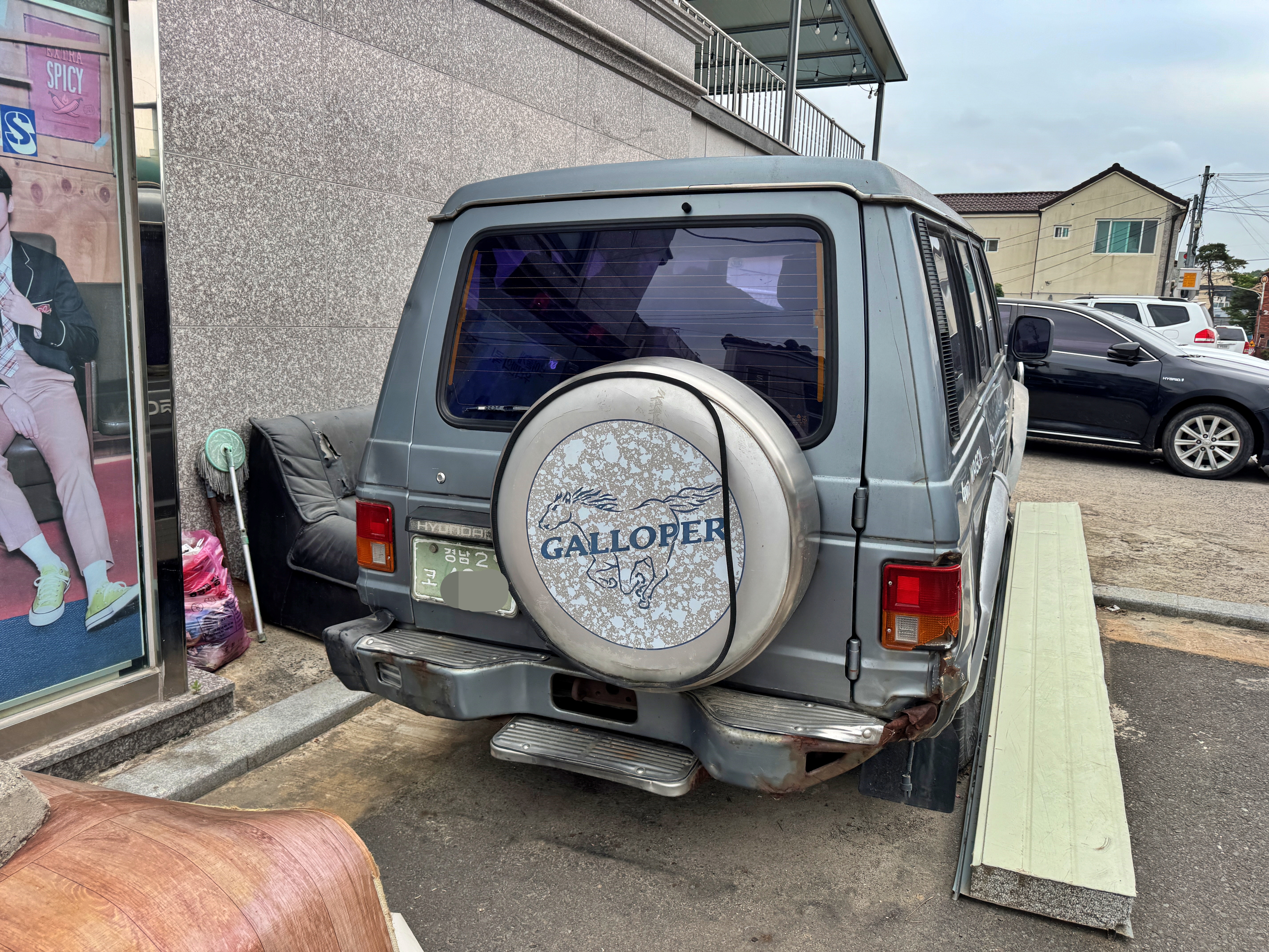 화려한 유행의 중심지에 32년의 세월을 버티는 와이드봉고가 조용히 자리를 지키고 있었습니다. 물론 세월이 지나며 도장이 바래고 표면에 부식이 생기는 부분은 어쩔 수 없지만, 평생을 시골에서 보내는 다른 차량들에 비하면 매우 준수한 상태를 보이고 있었습니다.