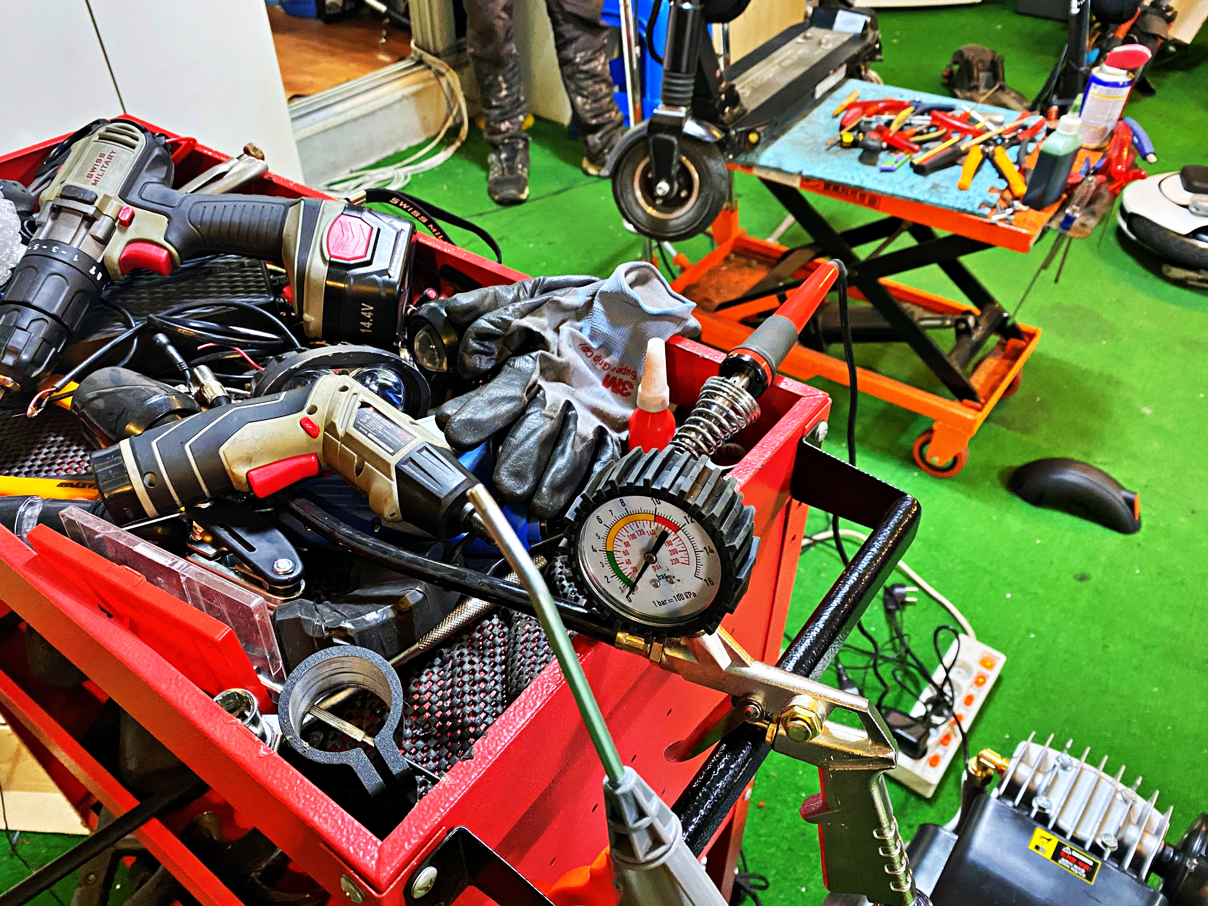 어차피 저도 시간 여유는 있는지라 여유롭게 기다려도 상관없었습니다만, 미니모터스 킥보드를 가지고 오신 아저씨가 저 먼저 수리해달라고 하시더군요. 저는 뒷타이어를 교체하고 불이 들어오지 않는 라이트를 수리하러 왔습니다. 봄에 대대적인 정비를 하긴 하려 했습니다만, 미루고 미루다가 며칠 전 요철을 밟으니 라이트가 들어오지 않아 주말에 시간을 내 왔던 것이죠.