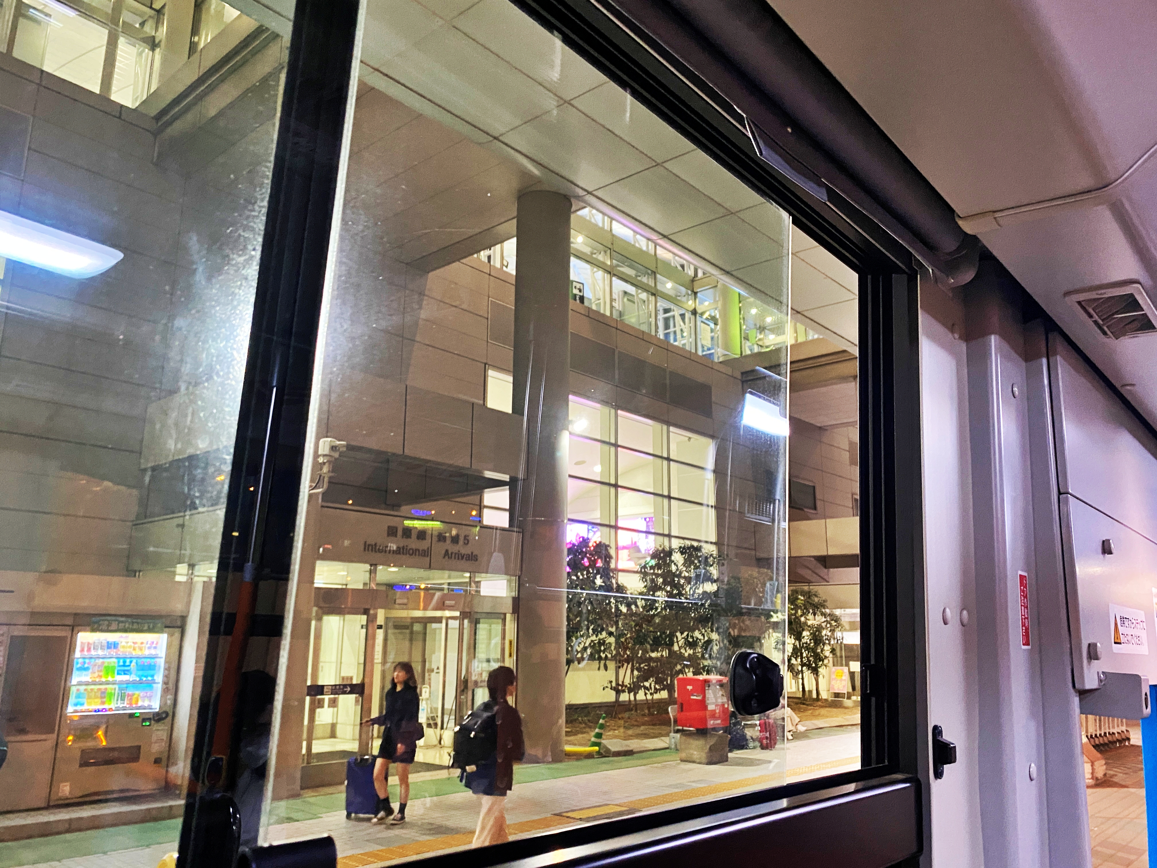 하카타로 나가는 시내버스를 타려다가 셔틀버스가 대기 중이기에 국내선 셔틀버스를 탔습니다. 기다리느니 차라리 기다림 없이 공항선 지하철을 타고 텐진역으로 가는 게 훨씬 이로울 겁니다.