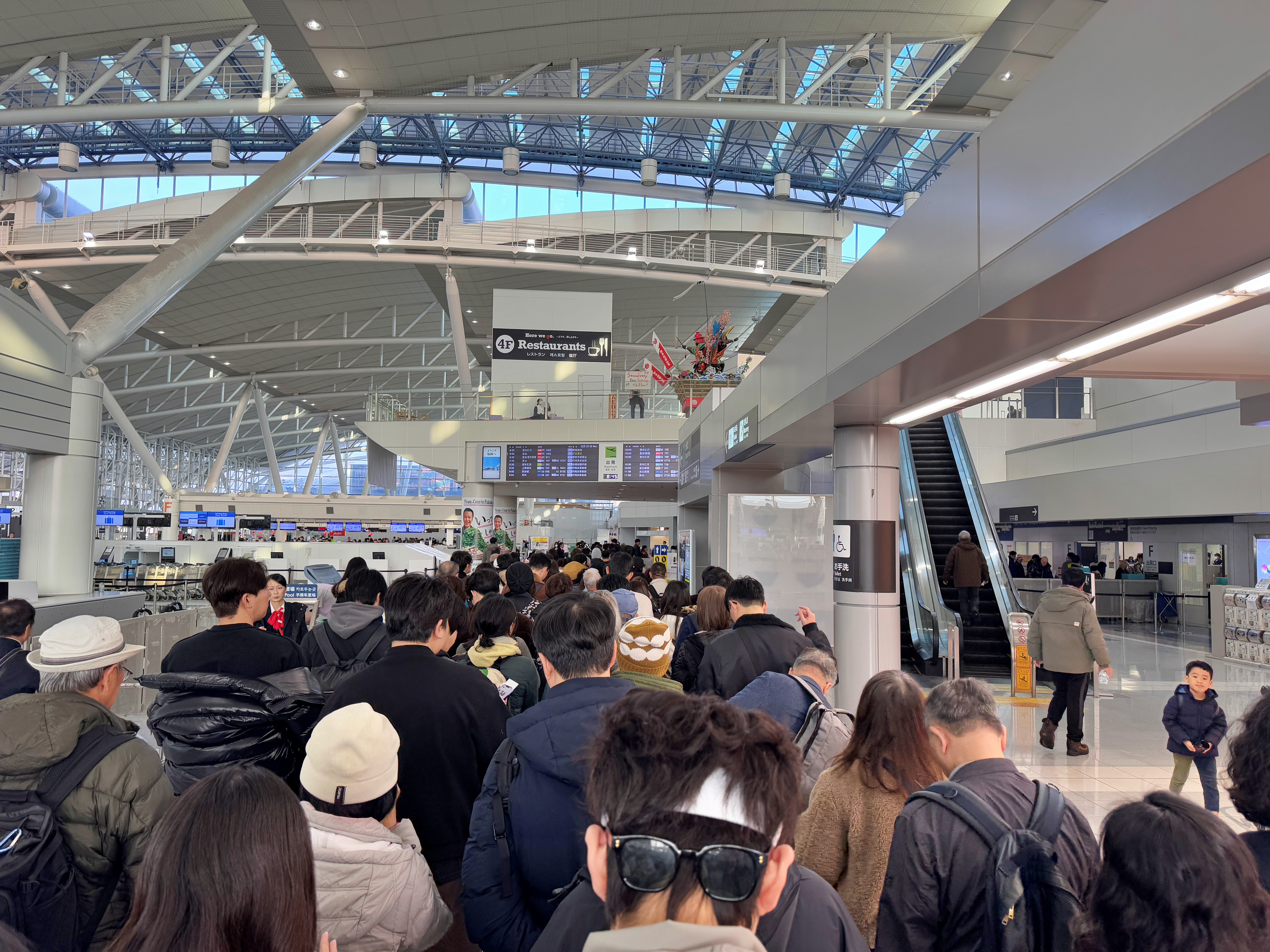 3월부터 수속장 확장공사가 마무리되어 지금은 저 앞으로 줄을 서고 검색대도 늘어났습니다만 이 시기만 하더라도 애매하게 오면 국제선 터미널 절반을 휘감고 돌 정도로 사람이 많아 수속장 입장까지 40여분을 기다려야 했습니다. 지금은 다 옛날 얘기죠.