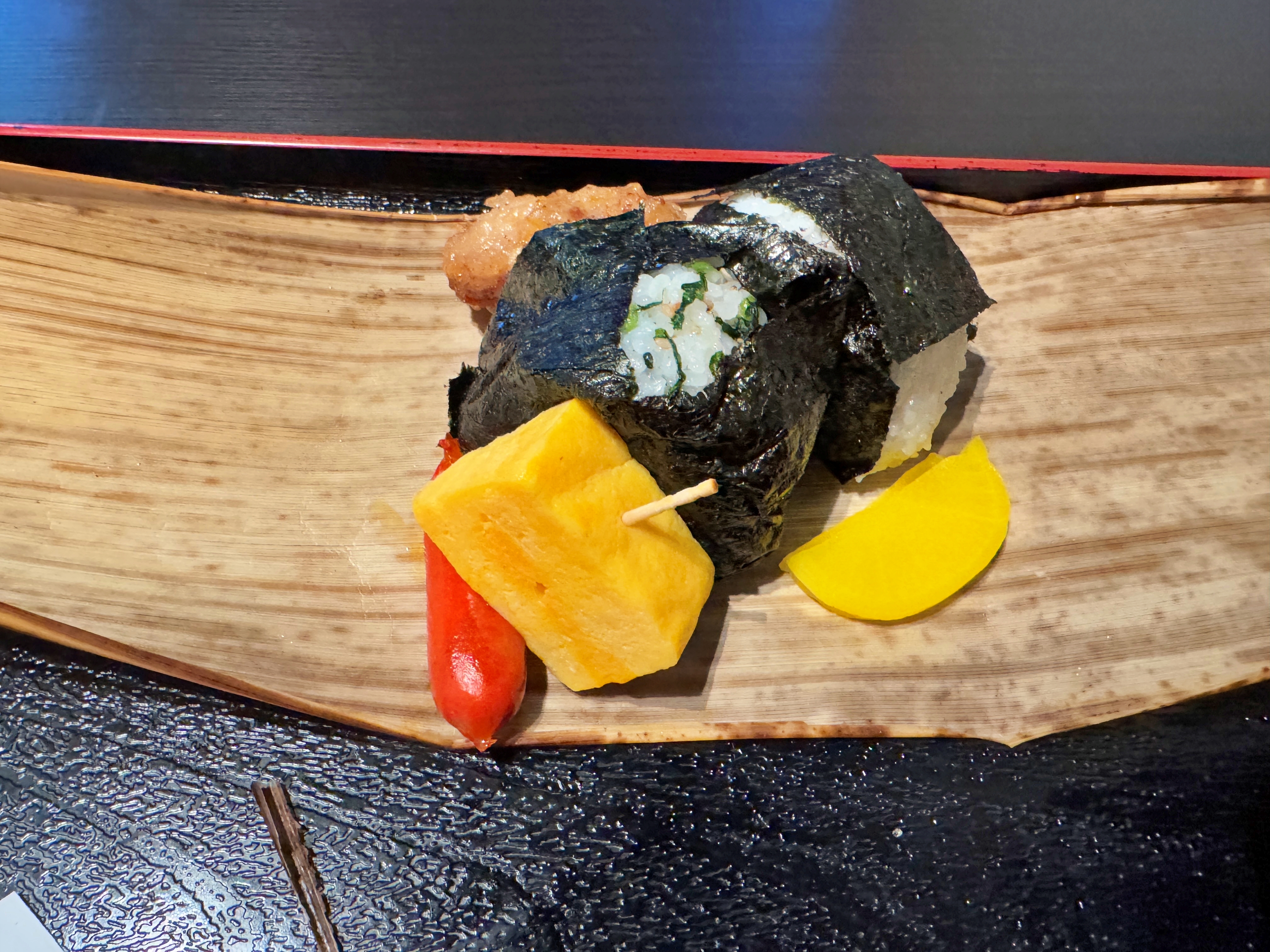 지금 바로 섭취하라는 문구가 있네요. 끈을 풀어보면 작은 오니기리가 있습니다.