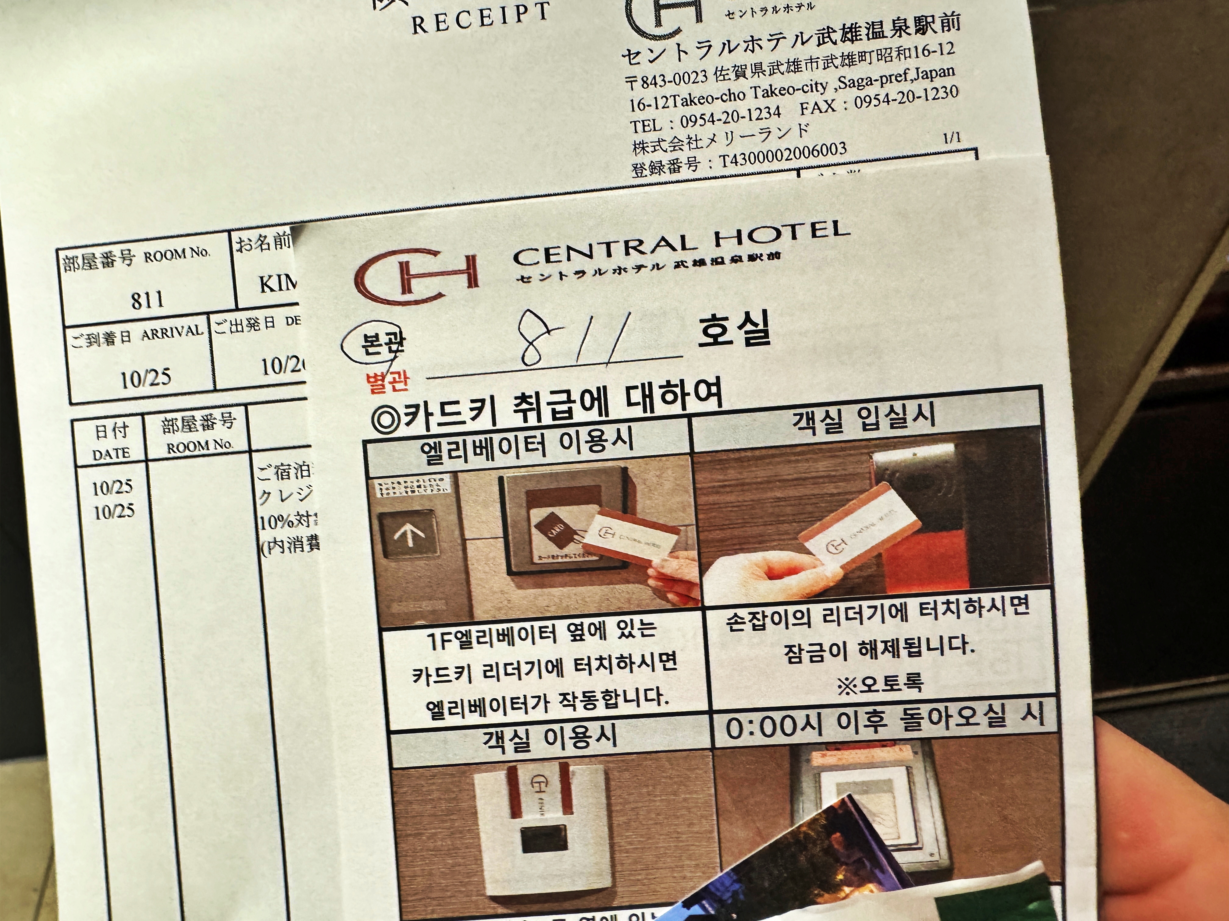 만날 분이 있어 타케오에 왔습니다만, 일단 숙소에 짐을 풀고 가기로 합니다. 타케오온천역 바로 앞에 있는 센트럴 호텔입니다. 2018년에 별관을 새로 건축하며 별관 8층에 작지만 대중탕 시설을 만들어 놓았다고 합니다. 그래서 적당한 가격에 적당히 깔끔하고 온천욕까지 즐길 수 있는 그런 호텔이 되었다고 하네요.