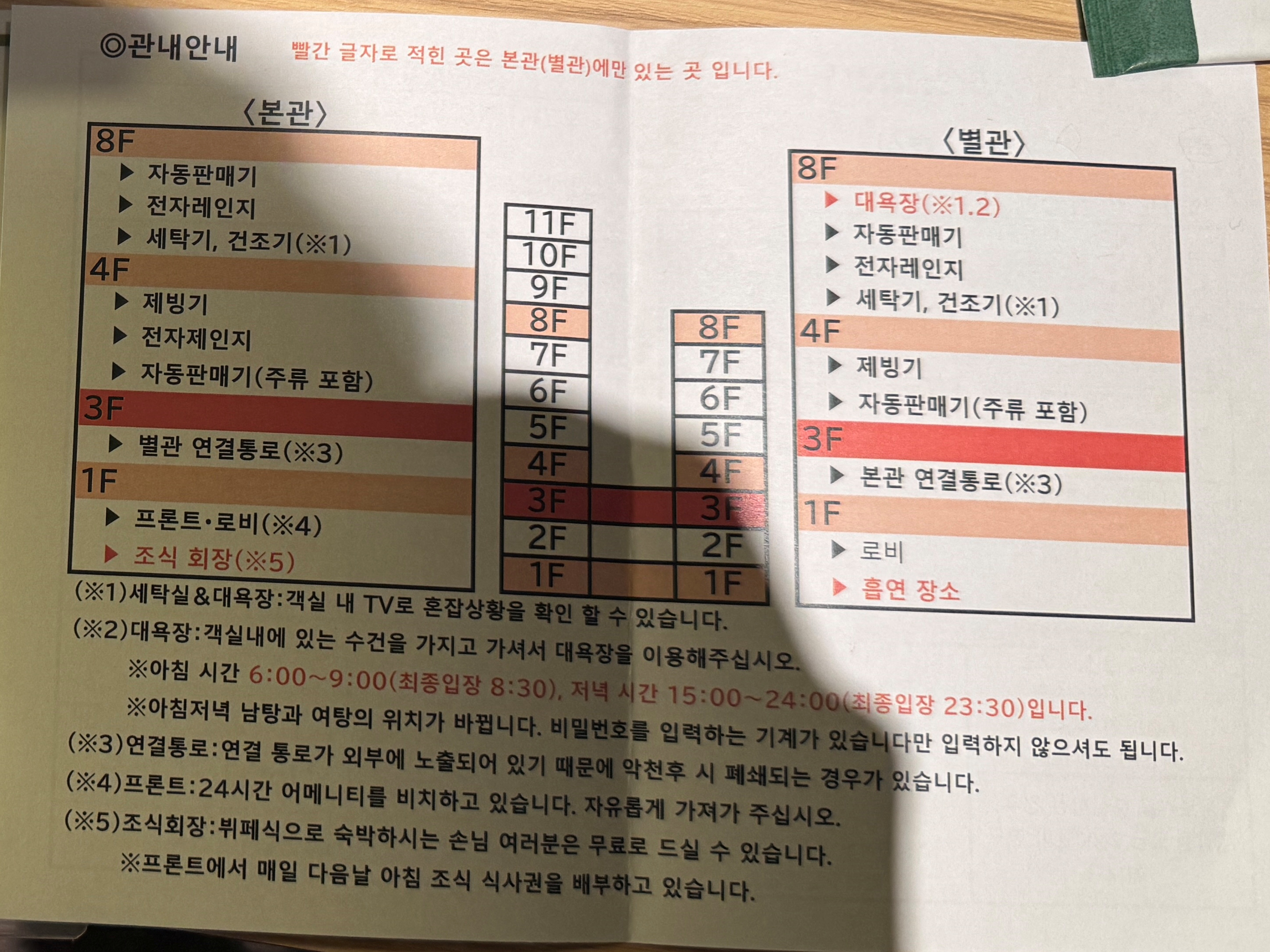 본관 8층 객실이니 3층으로 내려가서 별관 연결통로를 타고 별관으로 넘어가 다시 8층으로 올라가야 대욕장이 나온다고 합니다. 수건과 세면도구를 챙겨 대욕장으로 넘어갑니다.