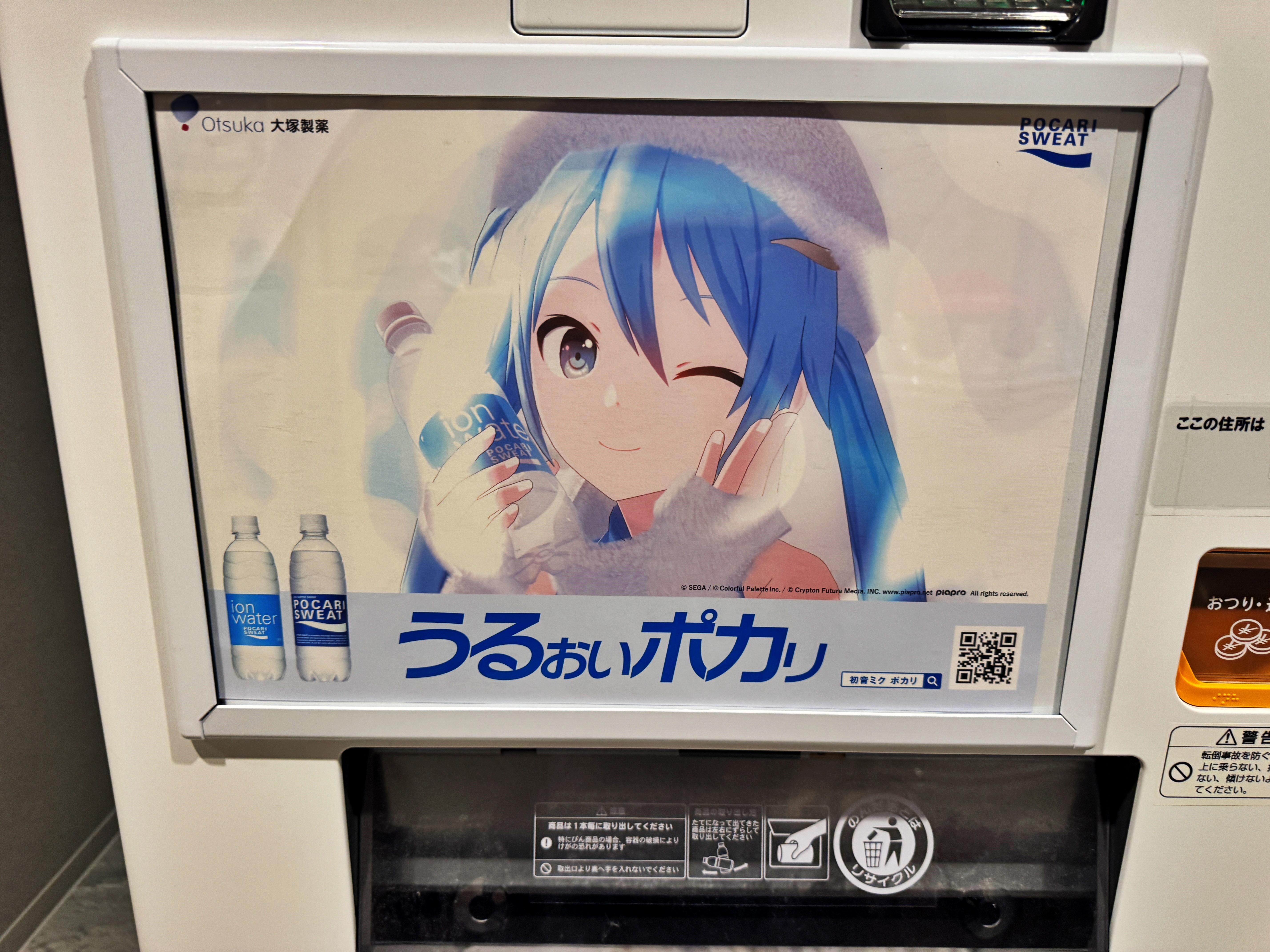 대충 온천욕을 마치고 자판기가 있는 층에 왔는데 하츠네 미쿠가 보이네요.