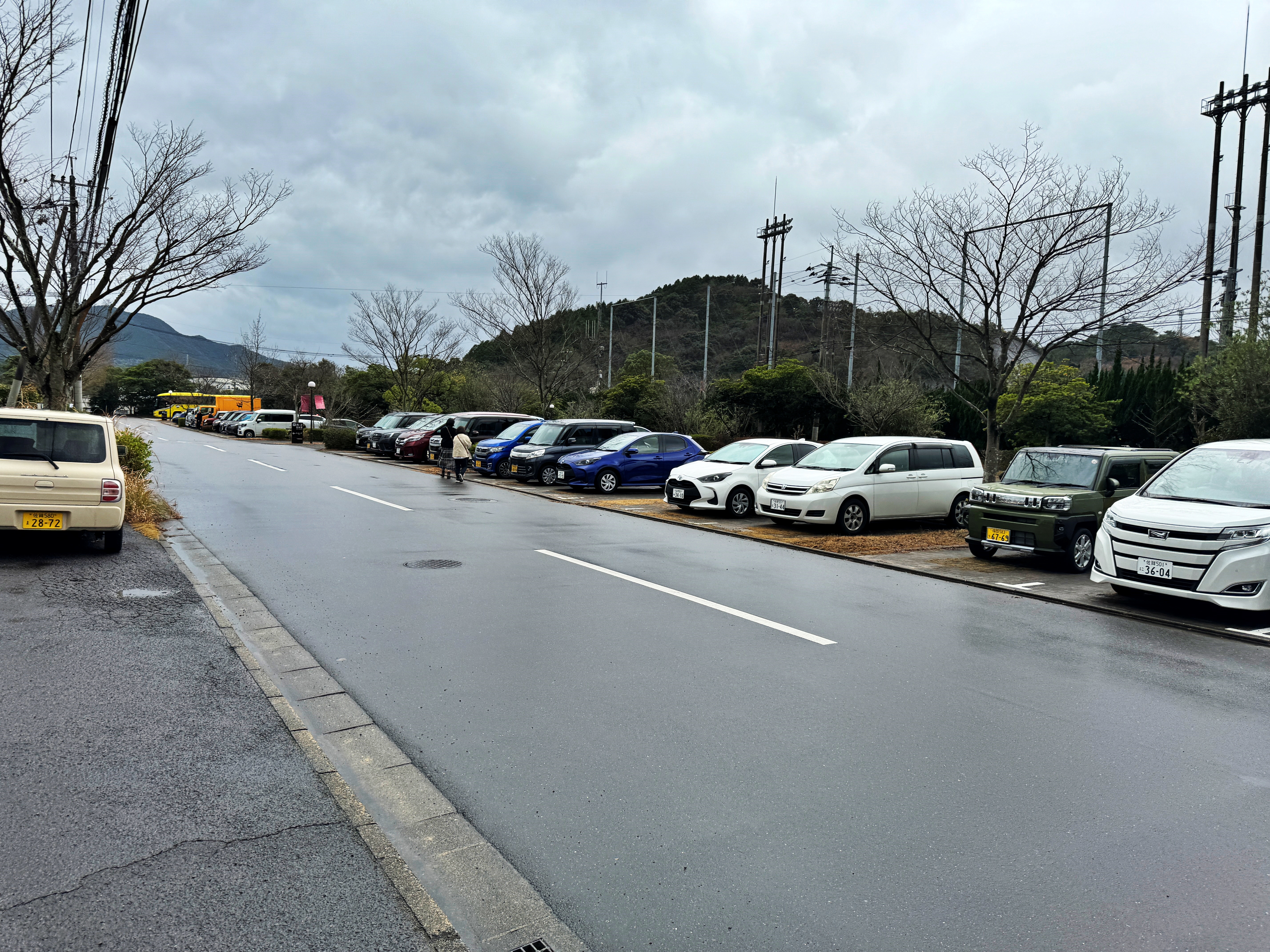 아리타 세라의 앞쪽 주차장은 통제중이고 뒤 주차장에 조심히 주차를 하고 넘어갑니다.
