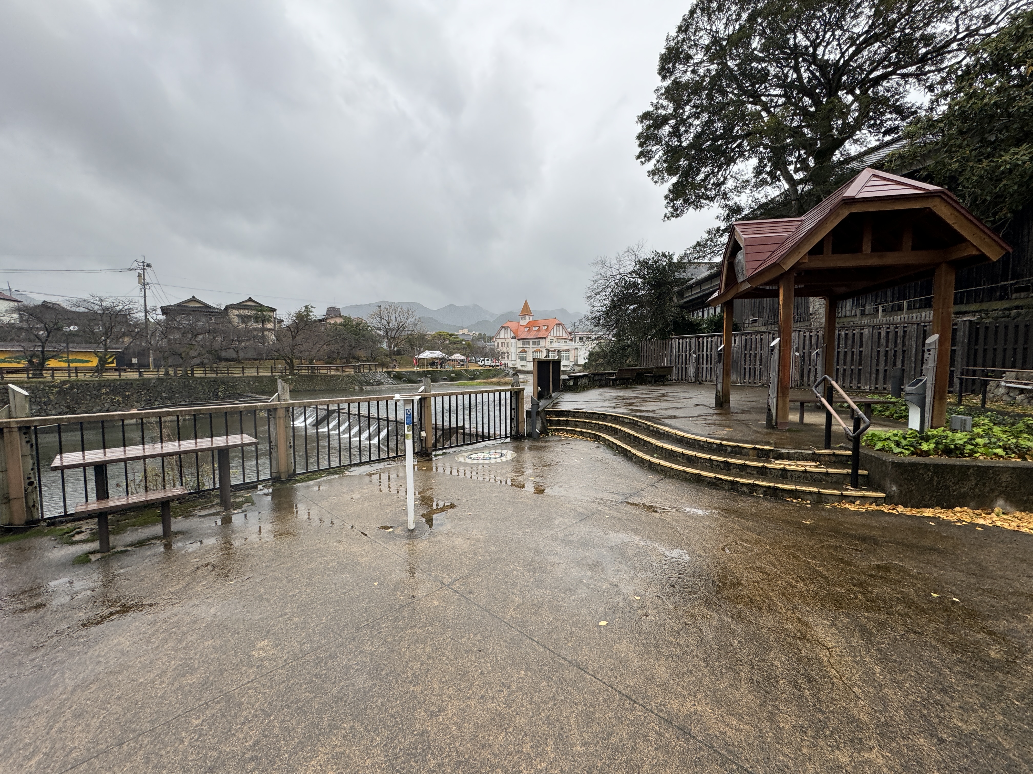 그냥 동네 작은 공원 그 수준입니다. 우레시노강 뒤로 시볼트노유 건물이 눈에 띕니다. 시볼트노유를 배경으로 사진을 촬영하긴 좋겠네요.