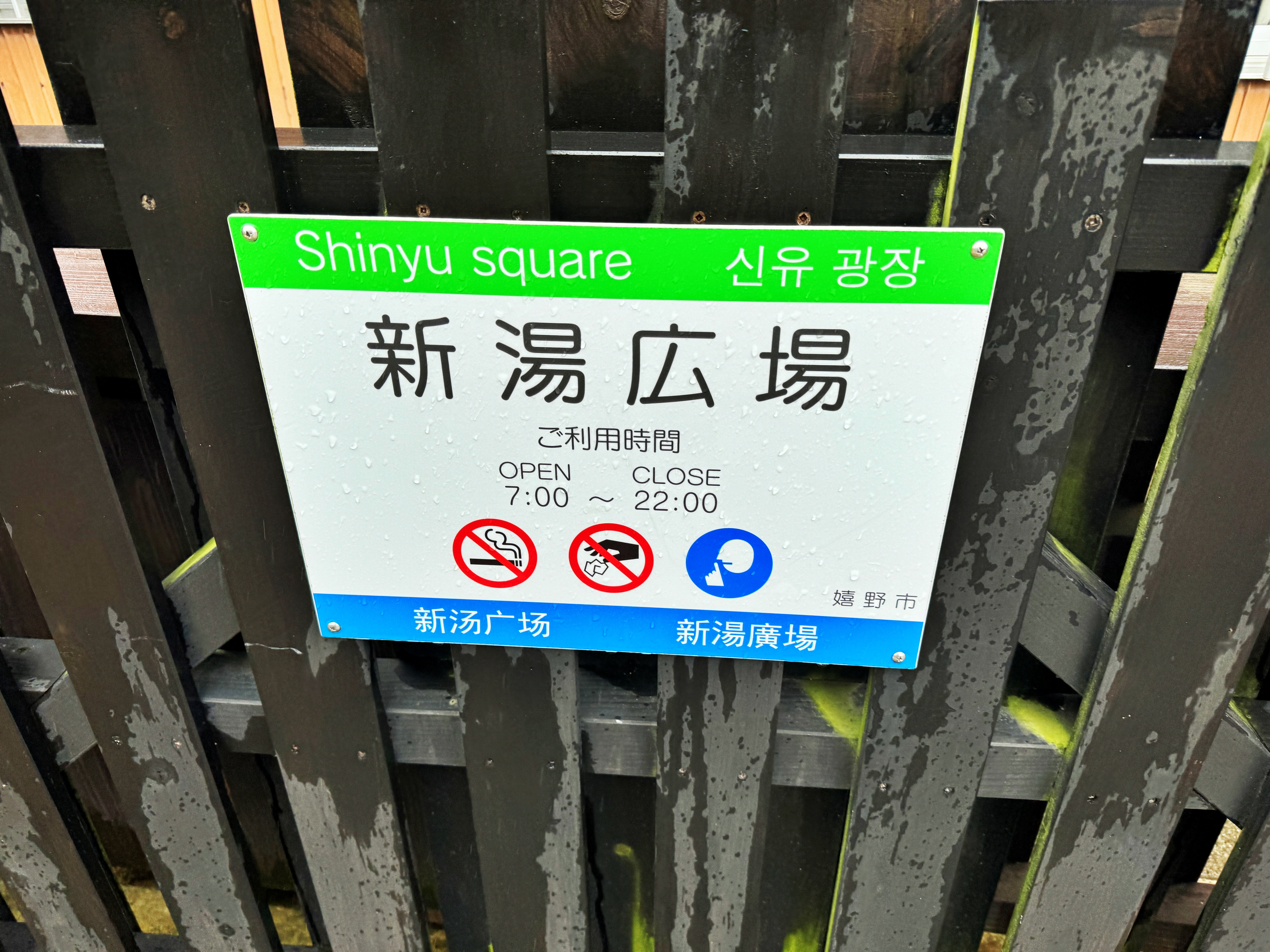 당연히 금연, 쓰레기 투기 금지와 함께 주택가인지라 조용히 이용해달라는 표시도 있네요. 과연 밤 10시에 공무원이 나와서 공원 출입문을 닫는지는 모르겠습니다. 공원 출입문에 이끼가 끼어있는 모습으로 봐선 실제 문을 닫지는 않는듯 보이지만요.