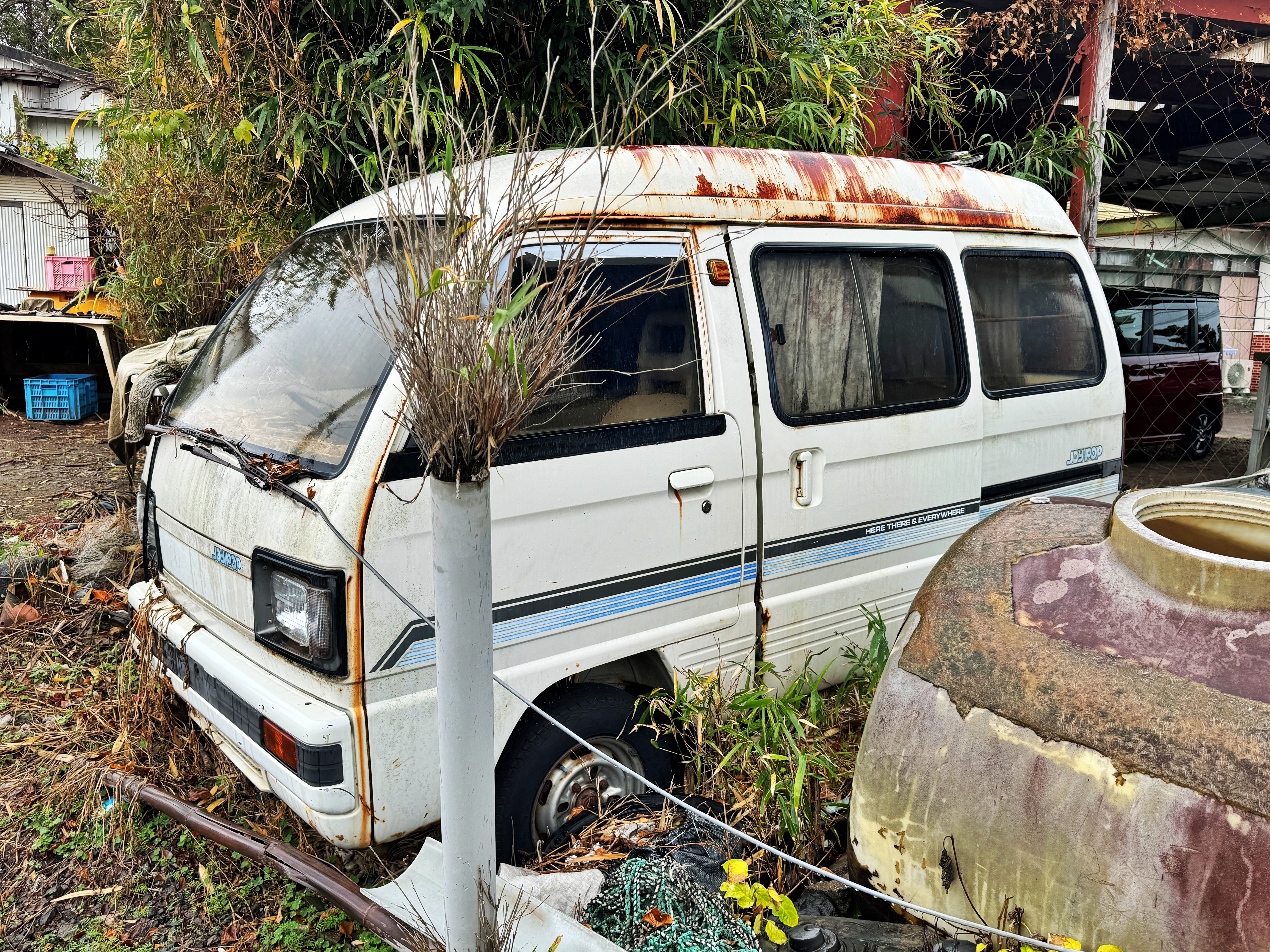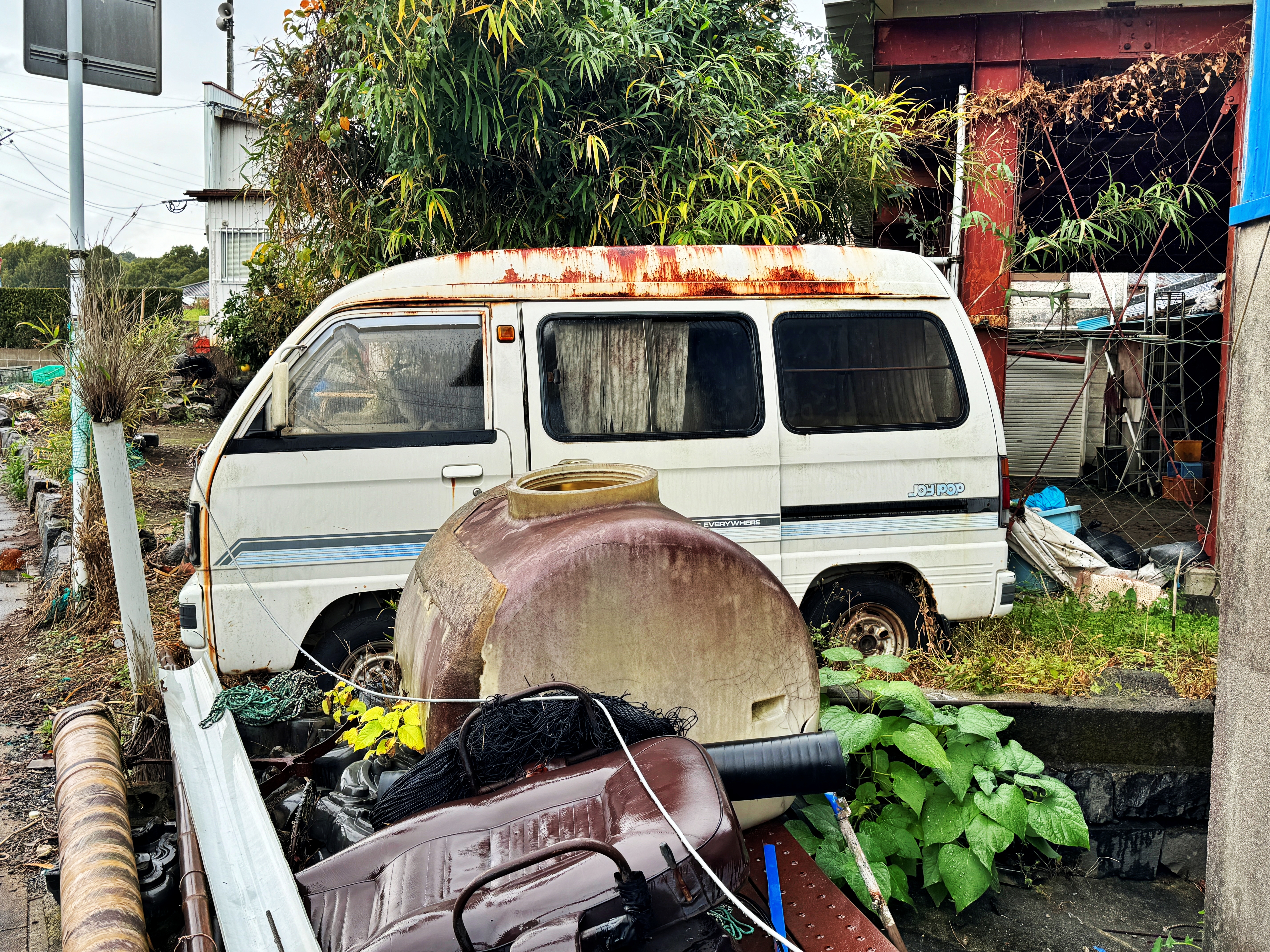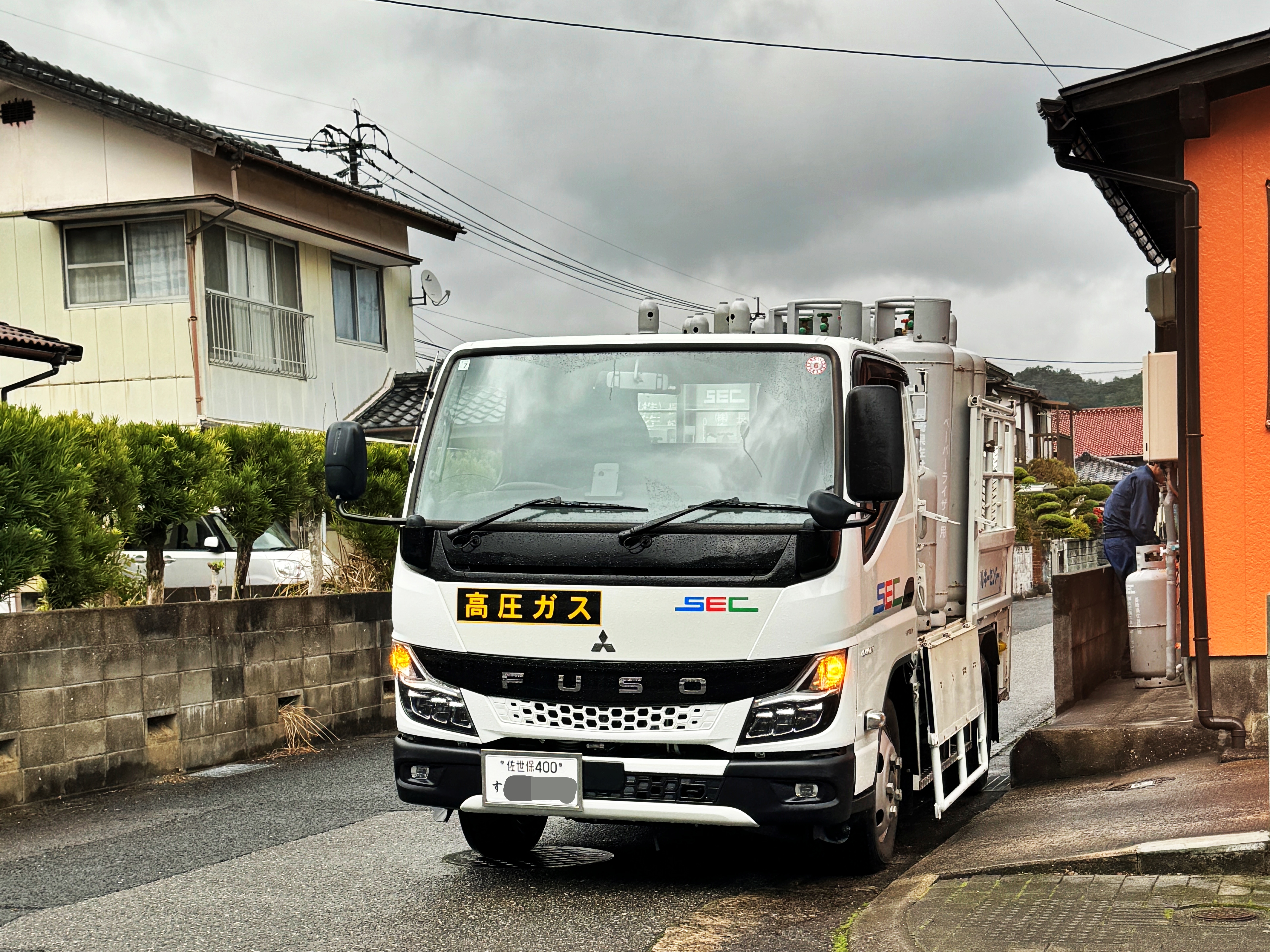 여튼 LPG 가스를 배달하는 차량으로 이용중입니다. 한국이라면 1톤트럭에 때려싣고 다니겠지만, 마이티급 준중형 트럭도 1.5톤 2톤급 모델이 존재하고 과적조차 거의 이루어지지 않는 나라인지라 준중형트럭으로 가스통을 싣고 가정집을 돌아다니며 교체해주고 있네요. 번호판은 바로 옆 나가사키현 사세보시 번호판입니다.