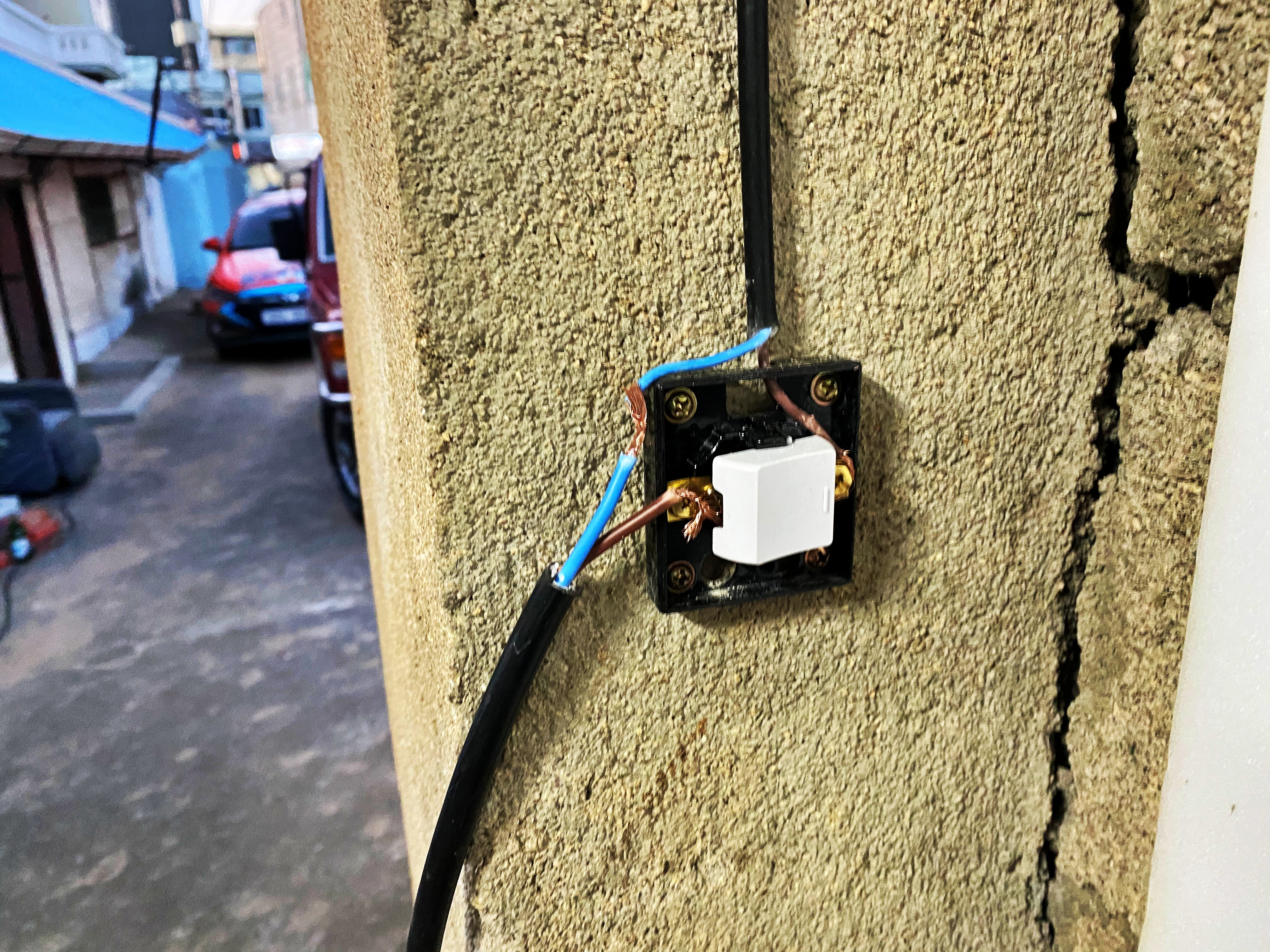 물론 전선이 벽을 타고 깔금하게 차고로 갈 수 있도록 정리한 다음 제대로 연결한 뒤 커버를 닫고 전원선은 그대로 이어서 2구 콘센트까지 아래 박아보기로 합시다. 그게 오늘의 작업입니다.