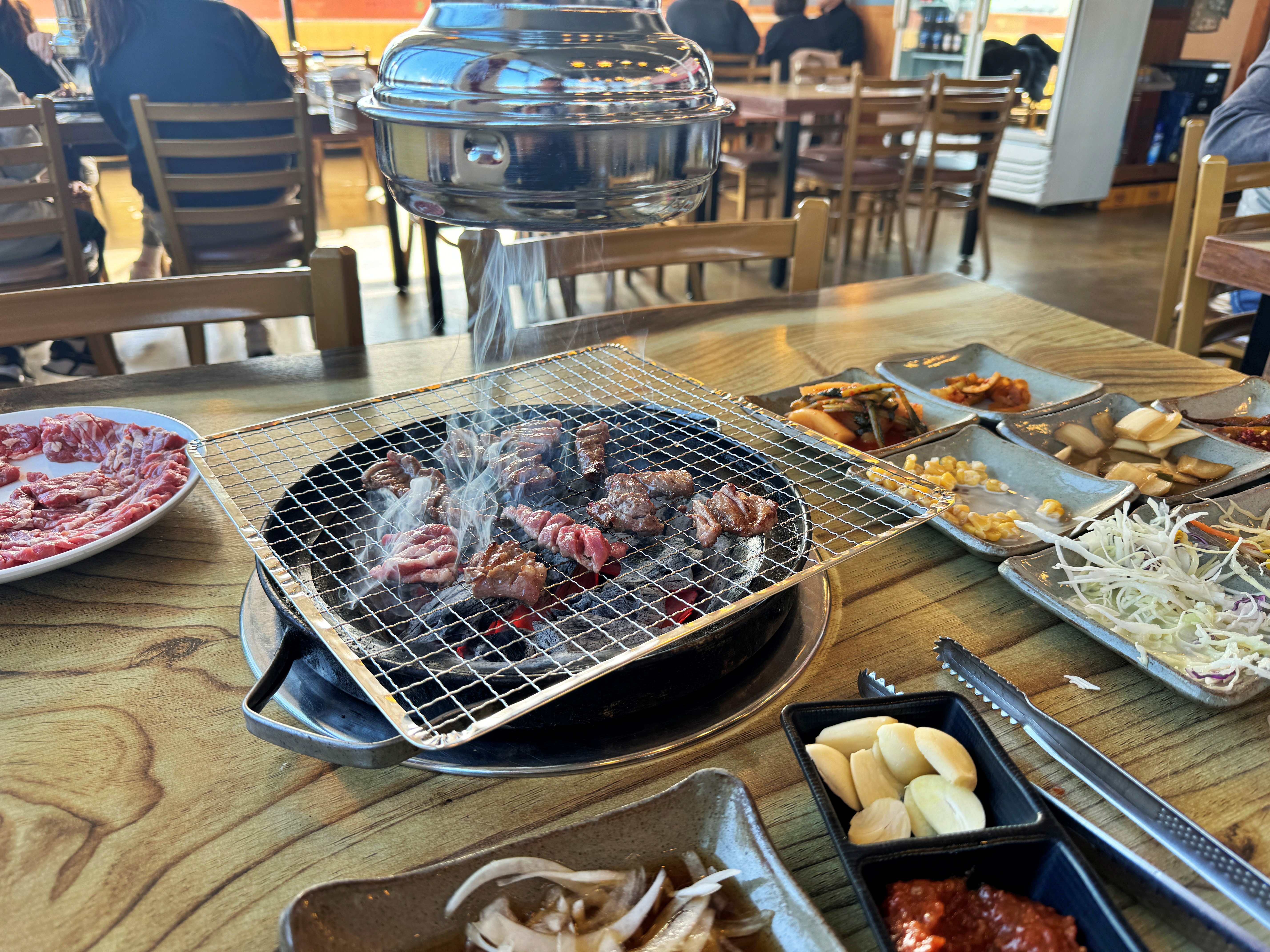 주변 테이블엔 2~4인 이상 앉아있습니다만, 고독한 도태남은 고독을 즐기며 혼자 고기를 굽고 있습니다.