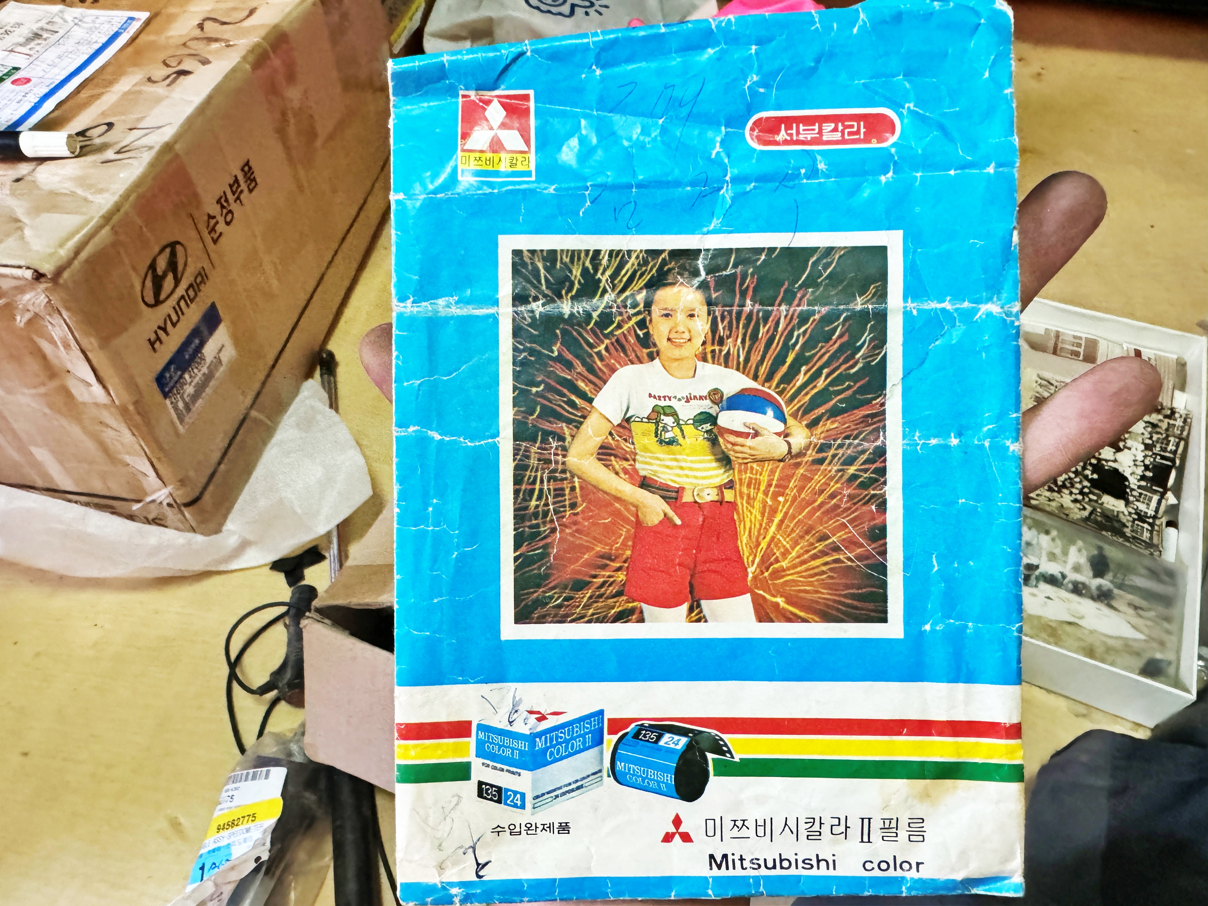 할머니께서 모아둔 사진들입니다. 그리고 사진관에서 인화 후 주던 종이봉투에 미쓰비시 필름 홍보문구가 보입니다.