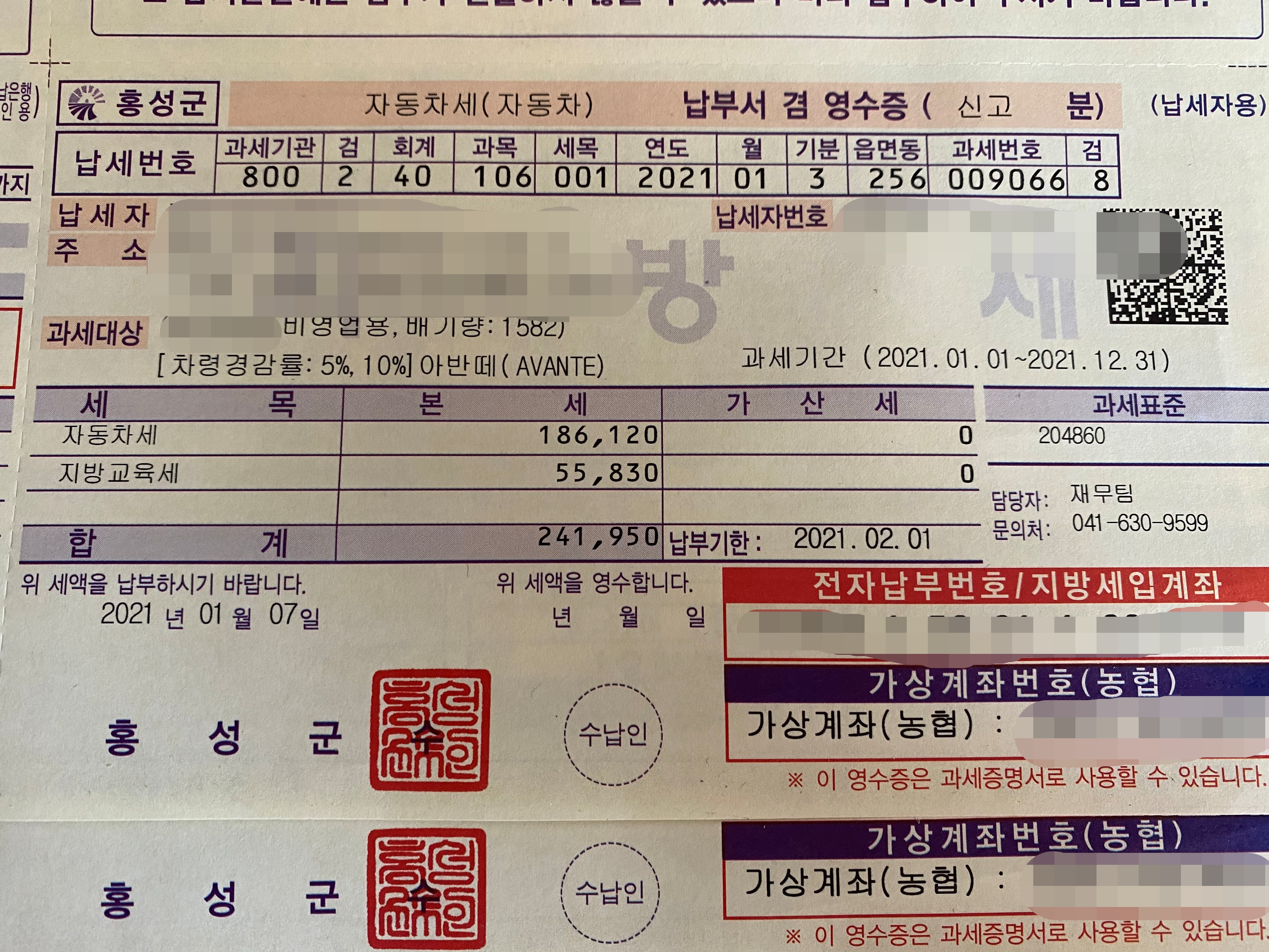 2020/01/15 - [티스도리의 자동차이야기] - 더 뉴 아반떼 자동차세 납부.(2020년도 자동차세 연납)