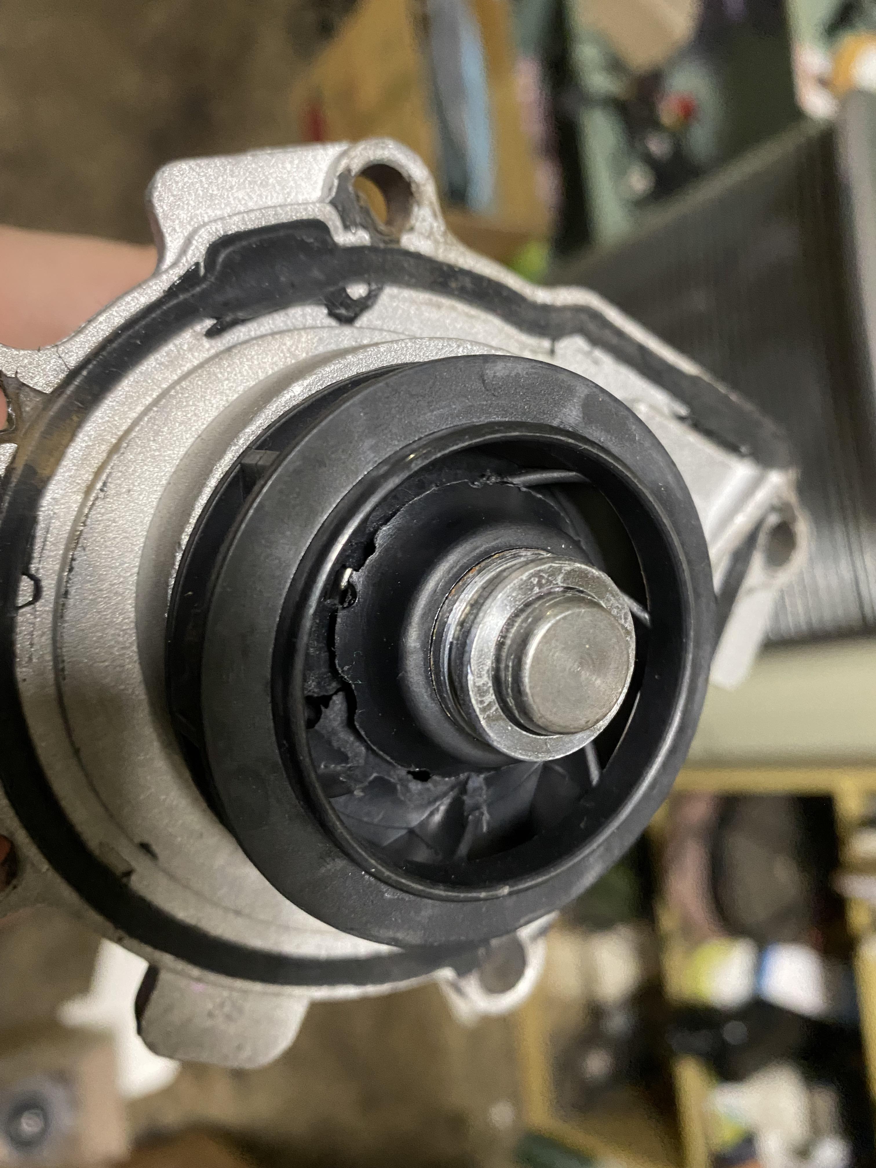 누가 봐도 속아넘어갈 비쥬얼. 금형에 찍혀있는 S&T대우 GM 로고의 위치까지 똑같습니다만, 타이밍벨트 작업을 하며 이 워터펌프를 장착하자마자 플라스틱 날개가 부러지고 말았습니다.