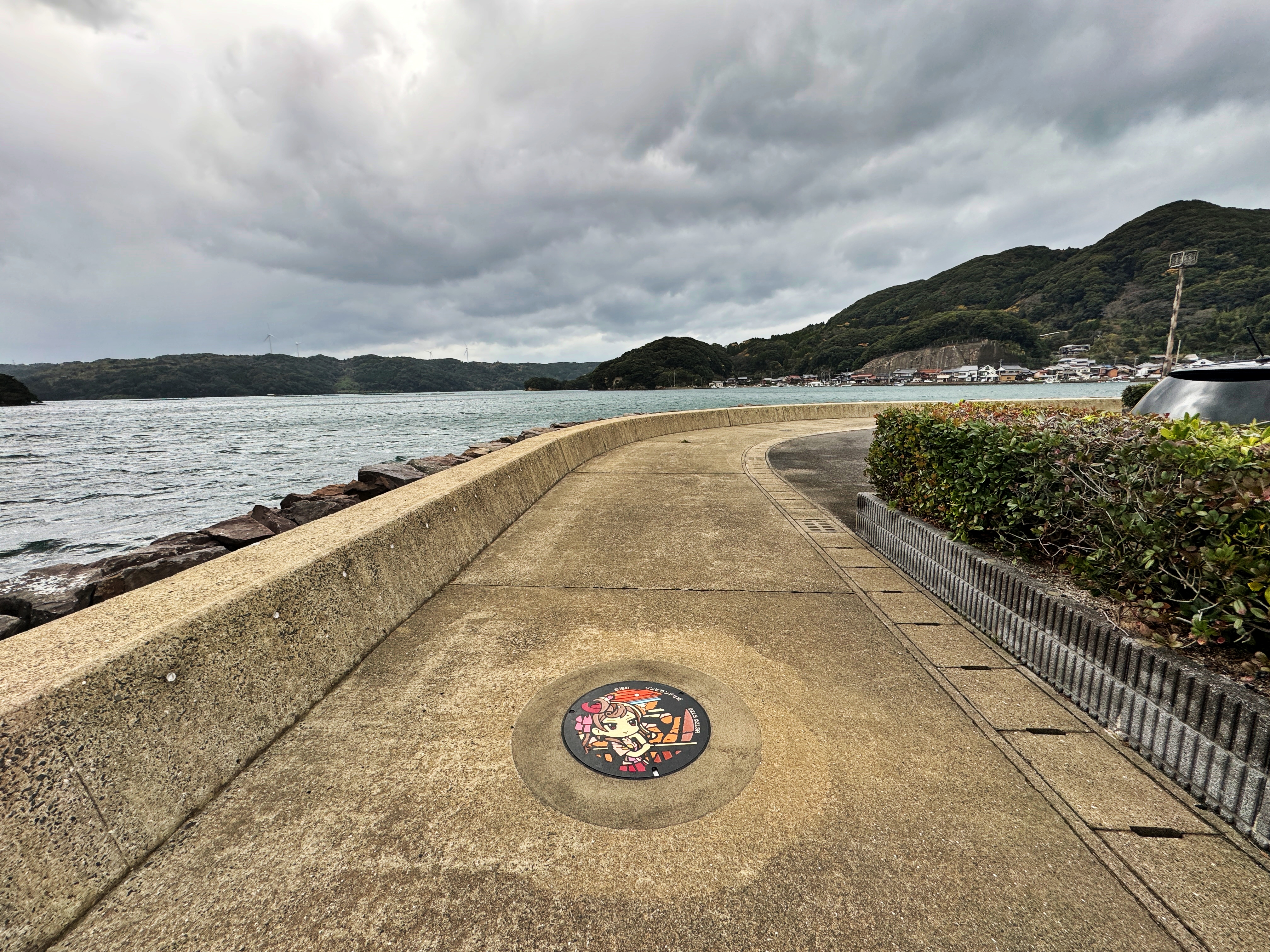 이미 이전에 보고 넘어왔던 사가현 최남단 다케자키 성지 전망대에서 봤던 맨홀 역시 지역 특산품인 꽃게와 함께 코타로와 로메오가 있었던 것 처럼 사가현 최북단 요부코초의 맨홀에서도 지역 특산품인 오징어와 함께 등장합니다. 즉 타츠미 코타로의 맨홀은 30개 중 두개가 설치되었는데, 사가현 최남단과 최북단에 설치되었다고 보면 되겠죠. 이것도 나름대로 의도가 있으리라 생각됩니다.