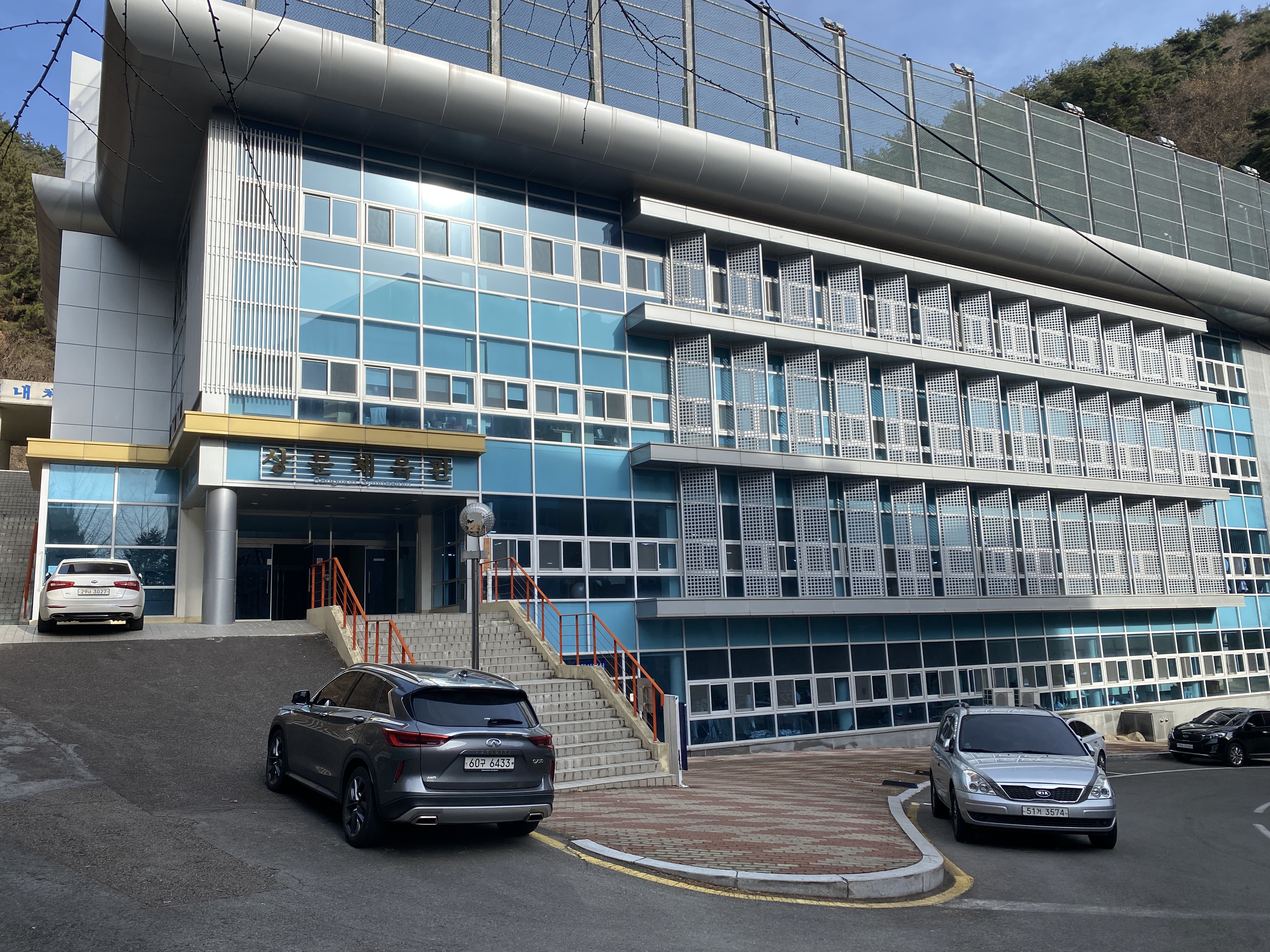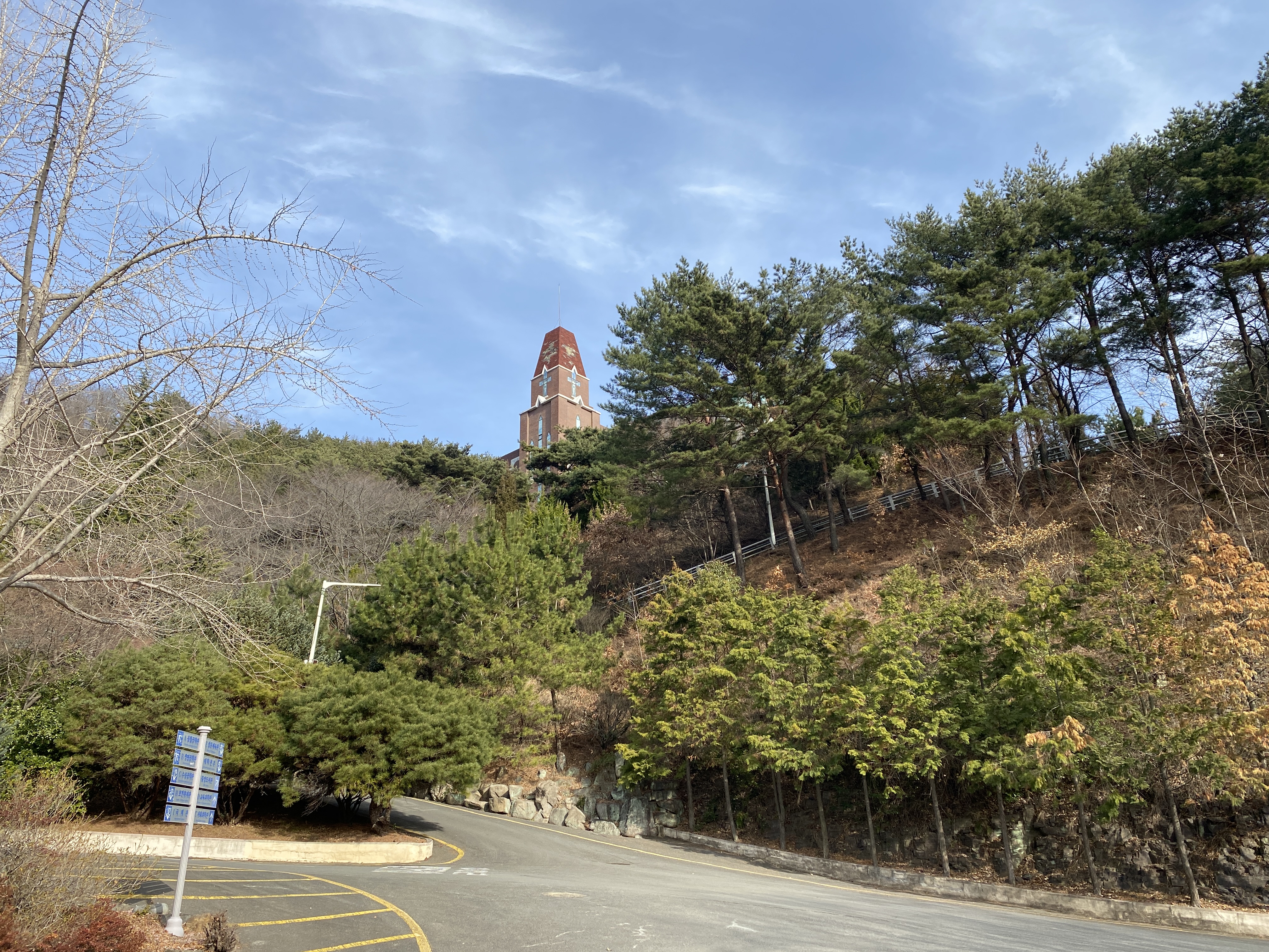 도서관 가기 참 어렵습니다. 이전에 봤던 등산로처럼 언덕을 가로질러 넘어가는 계단이 있긴 한데 차량은 한참 더 돌아서 올라가야 합니다.