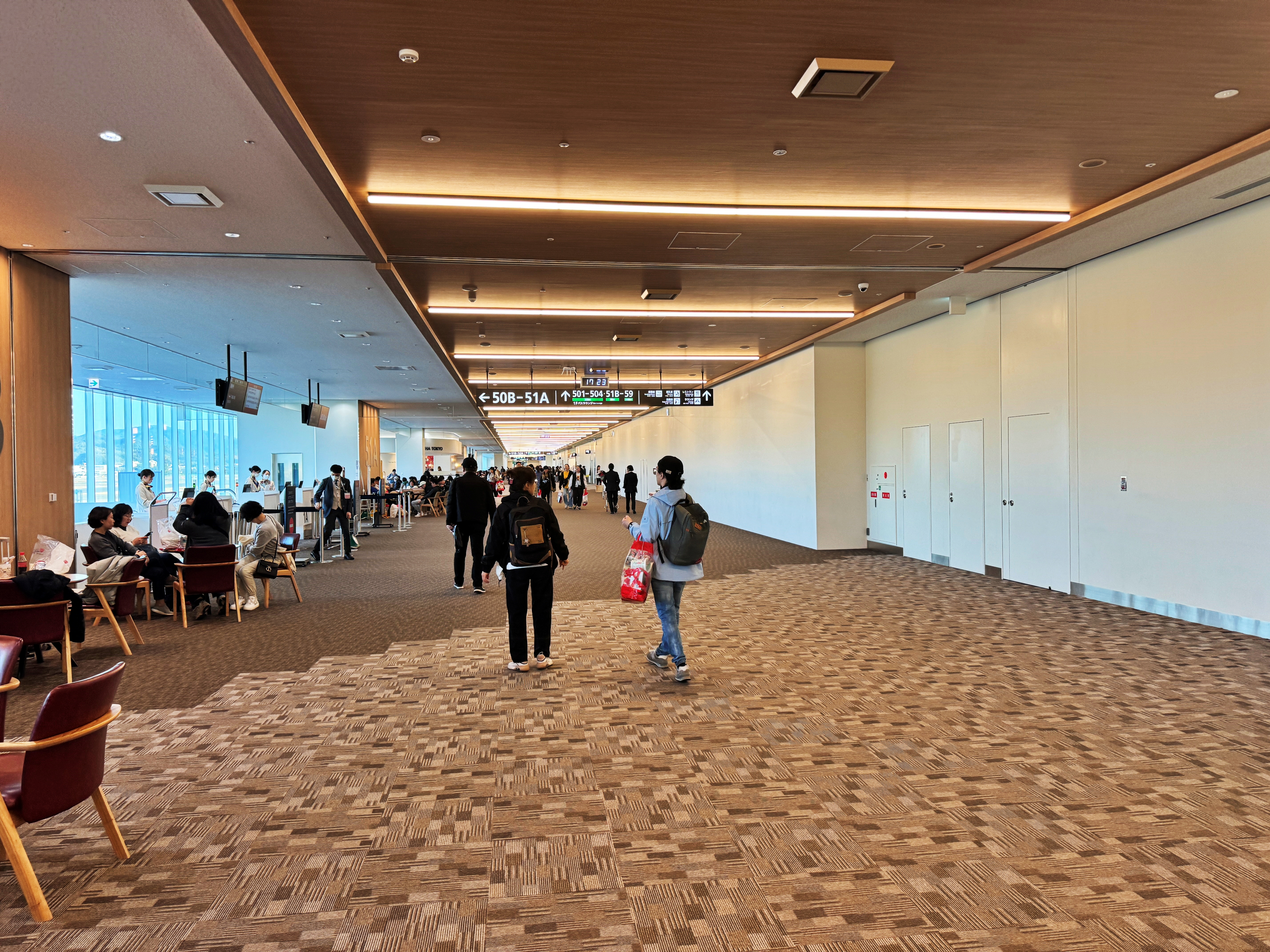 확장된 후쿠오카공항 국제선 터미널 출국동입니다.