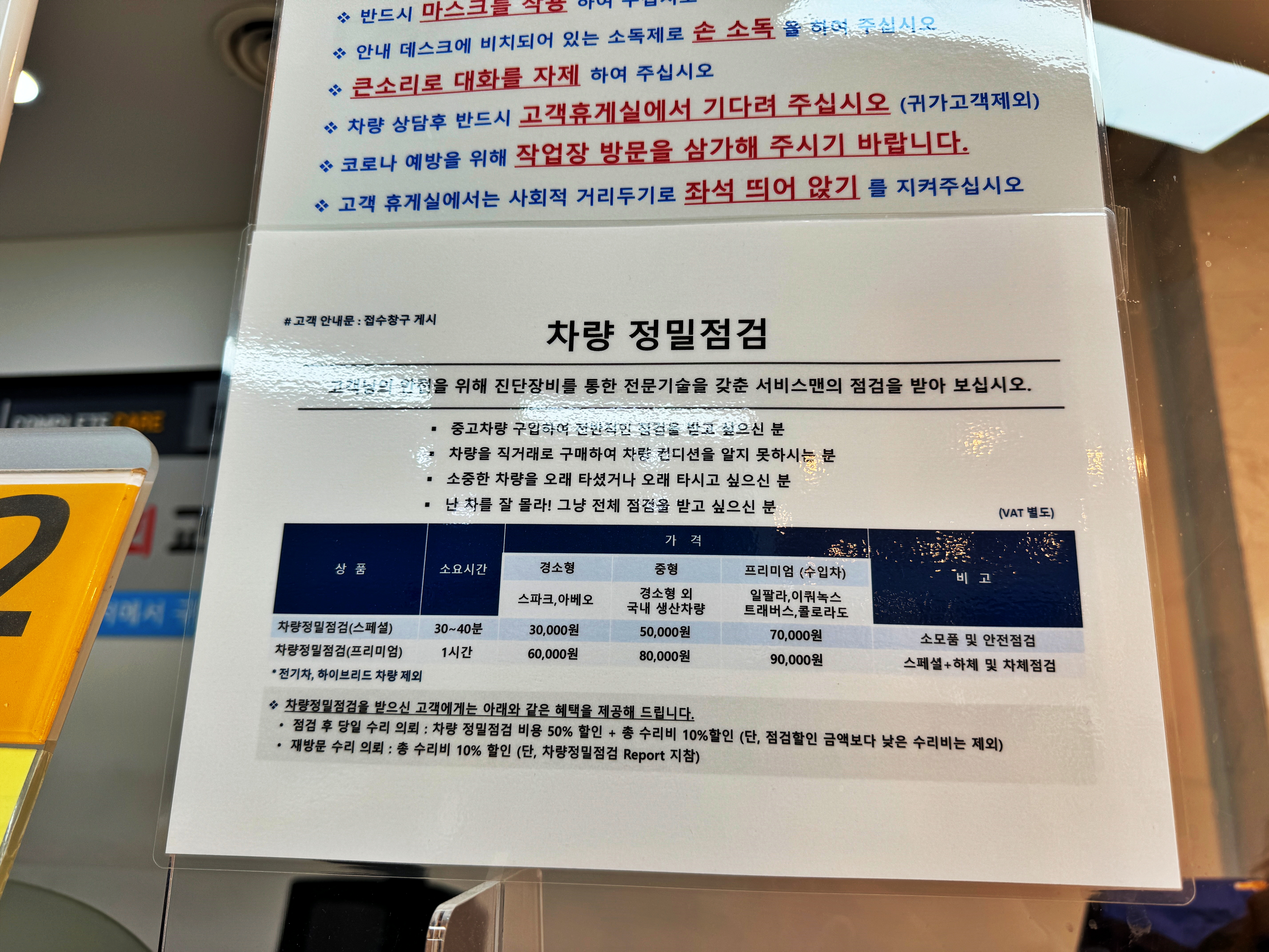 차알못을 위한 차량 정밀점검도 준비되어 있네요.