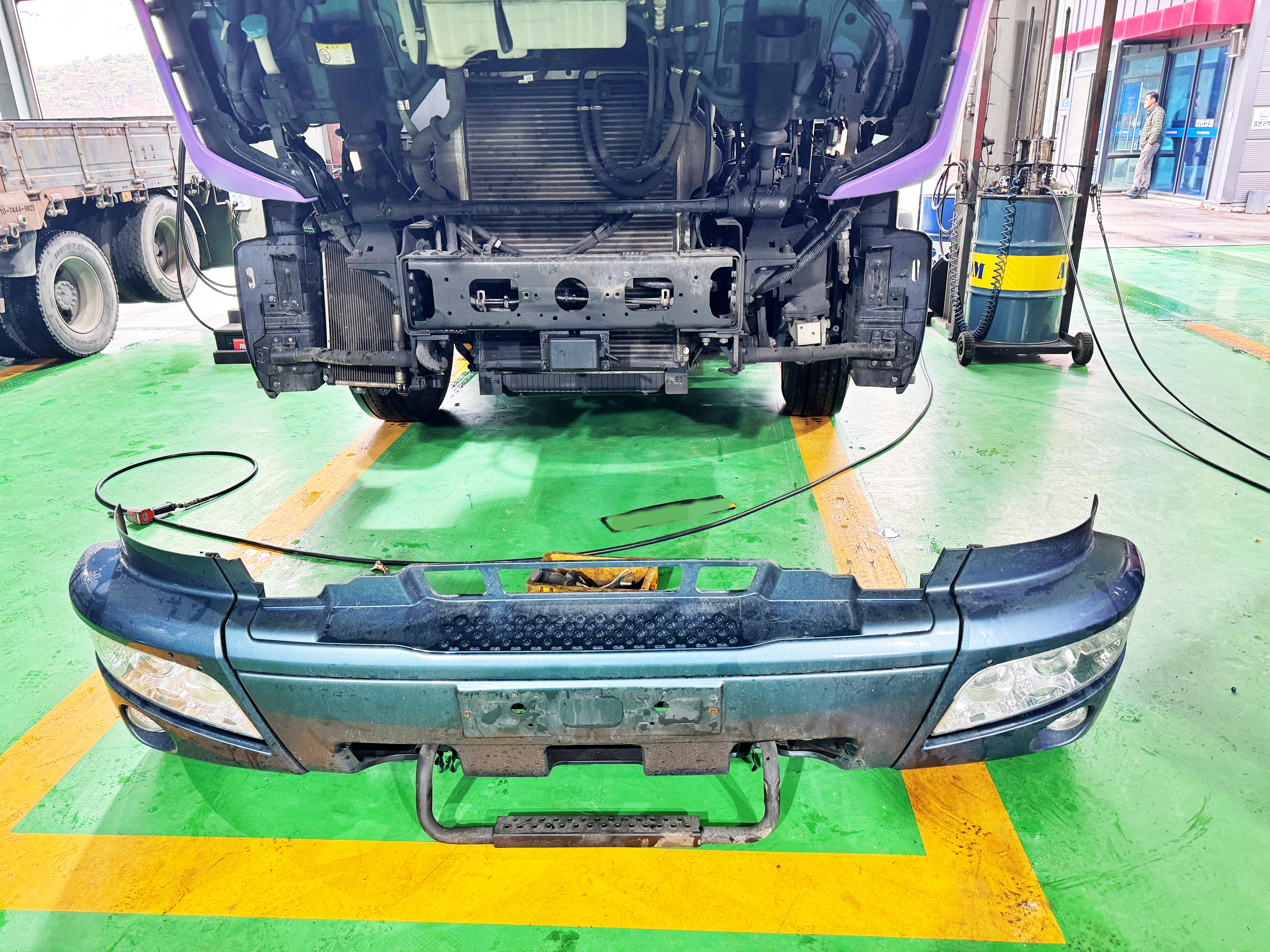 승용차 타이어에 박는 지렁이를 화물차 타이어에 박은건 처음 봅니다.