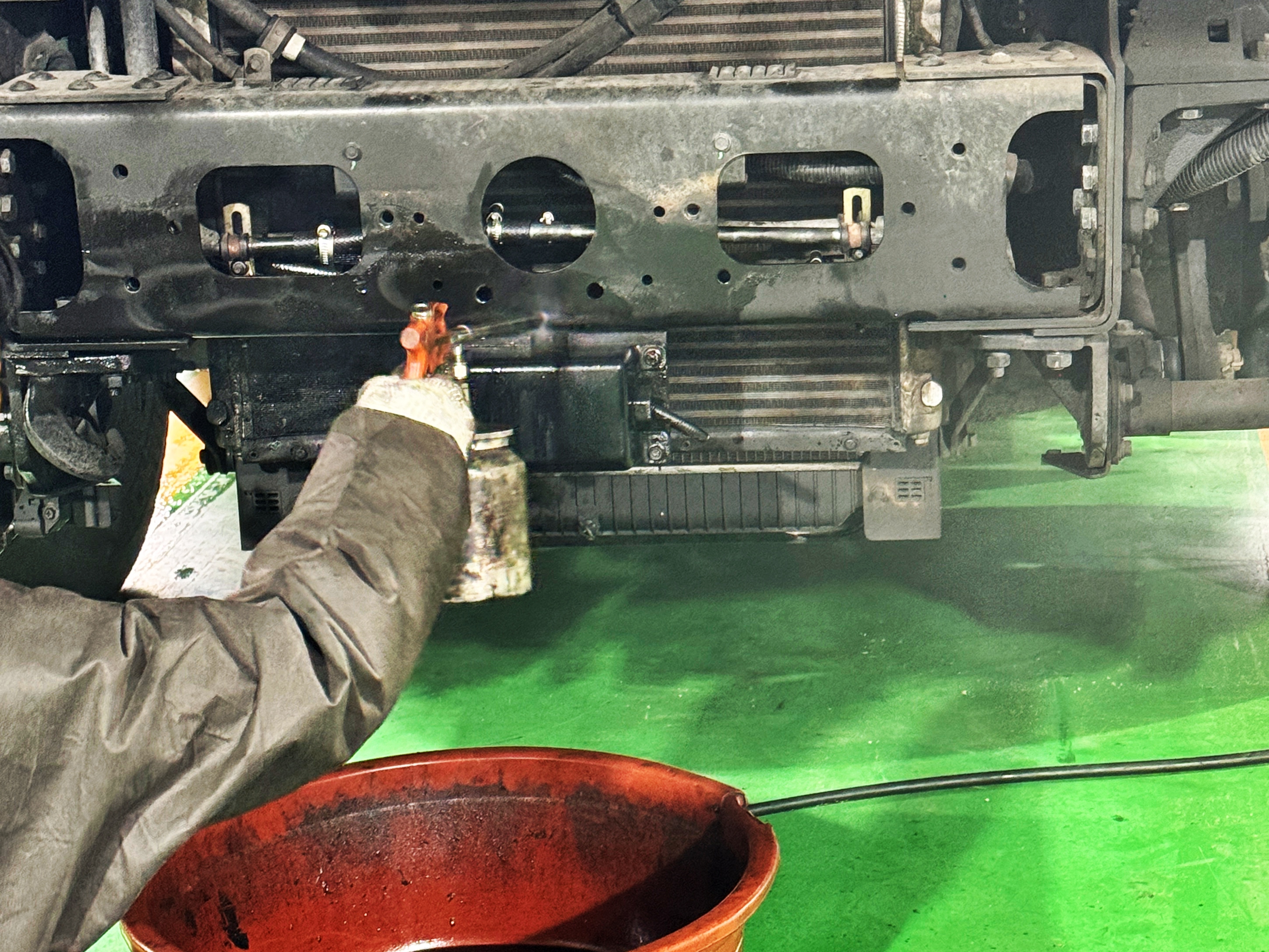 역시 새 퍼지탱크는 깔끔합니다. 마지막으로 호스와 연결된 부위에서 누기 여부를 점검하고 이상 없음을 확인한 뒤 차량을 출고합니다.