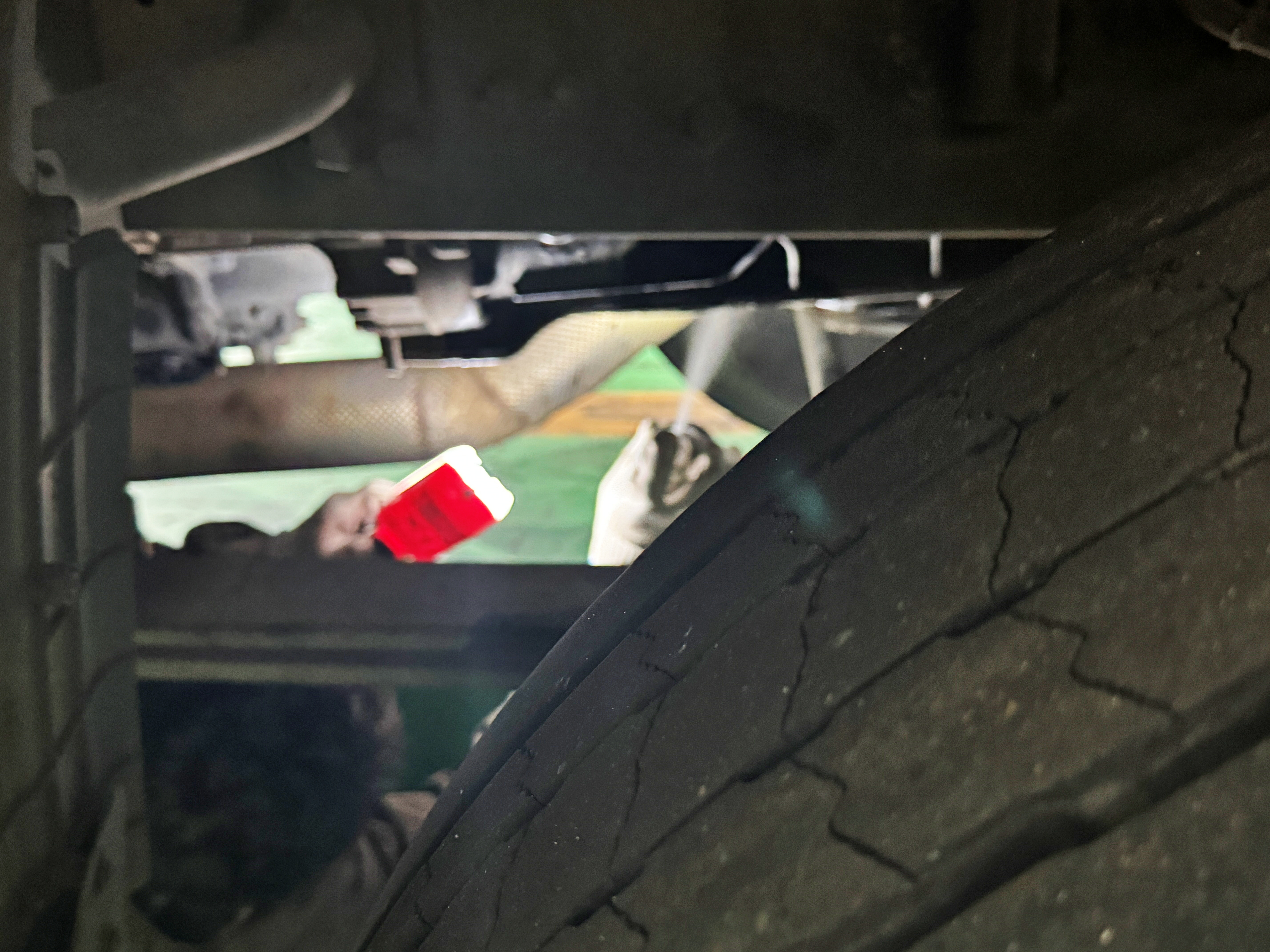 언뜻 보면 미션오일의 누유가 있는 것 같은 느낌입니다. 달리며 미션오일이 이리저리 튀어서 주변까지 더럽게 묻어버렸습니다. 차주가 보고 있지 않으니 그냥 대충 내리고 대충 주입하고 코크를 닫은 것 같은데 이건 아무리 봐도 너무하다는 생각밖에 들지 않습니다.