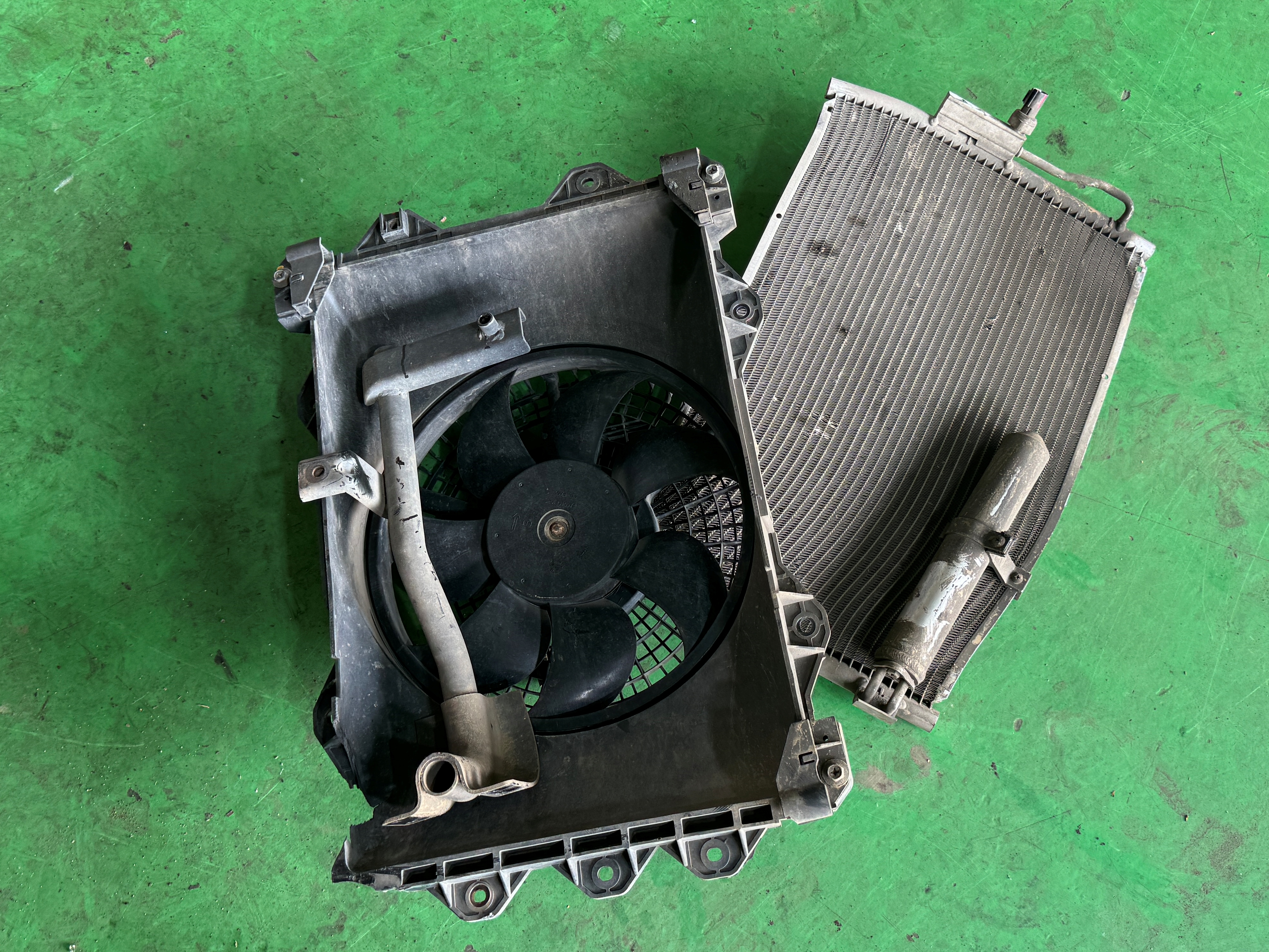 탈거된 부품들. 파이프 냉각팬 그리고 콘덴서입니다.
