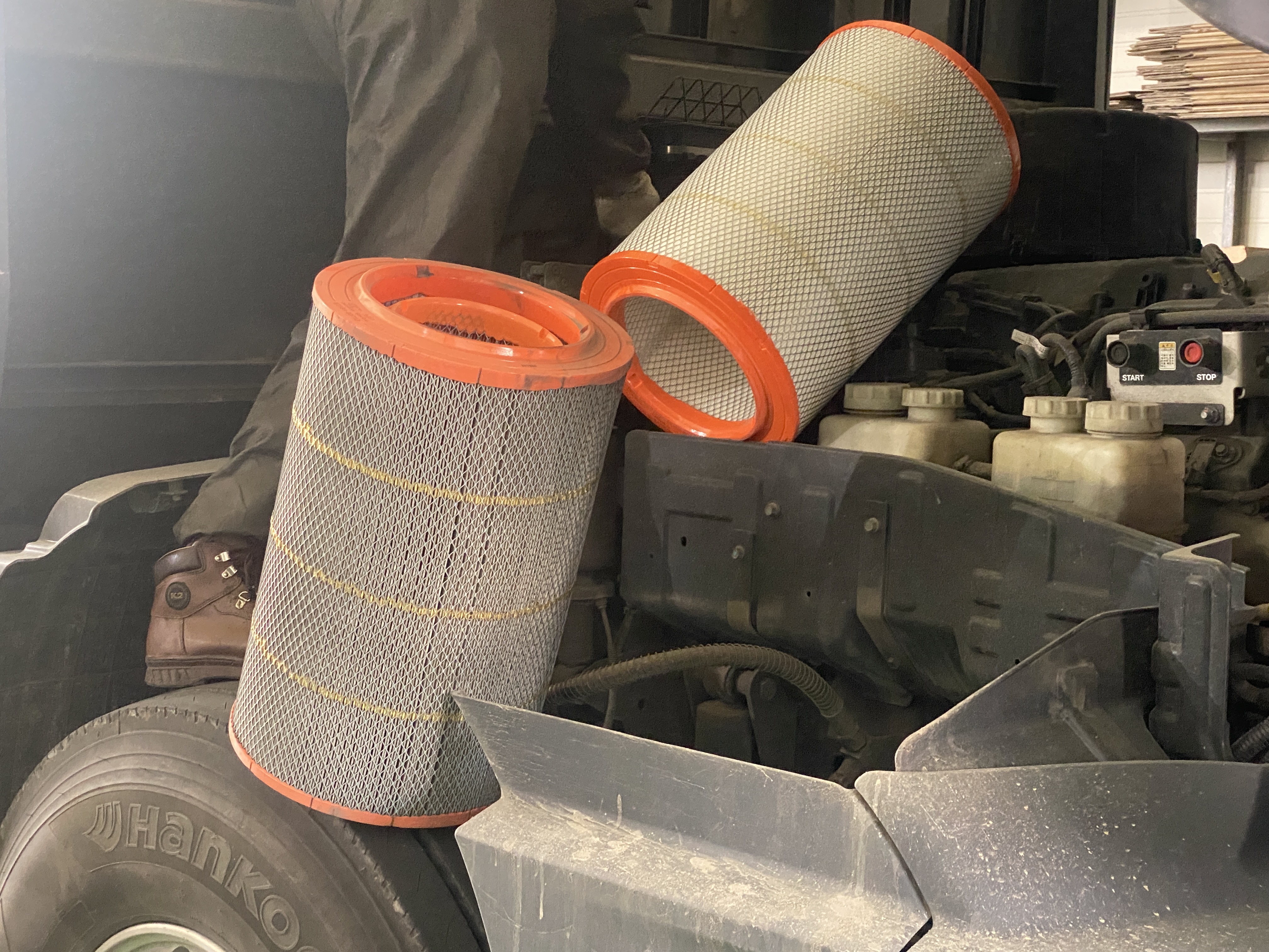 에어클리너 필터입니다. 큰 필터 안에 작은 필터까지 두 개가 한 세트를 이룹니다.