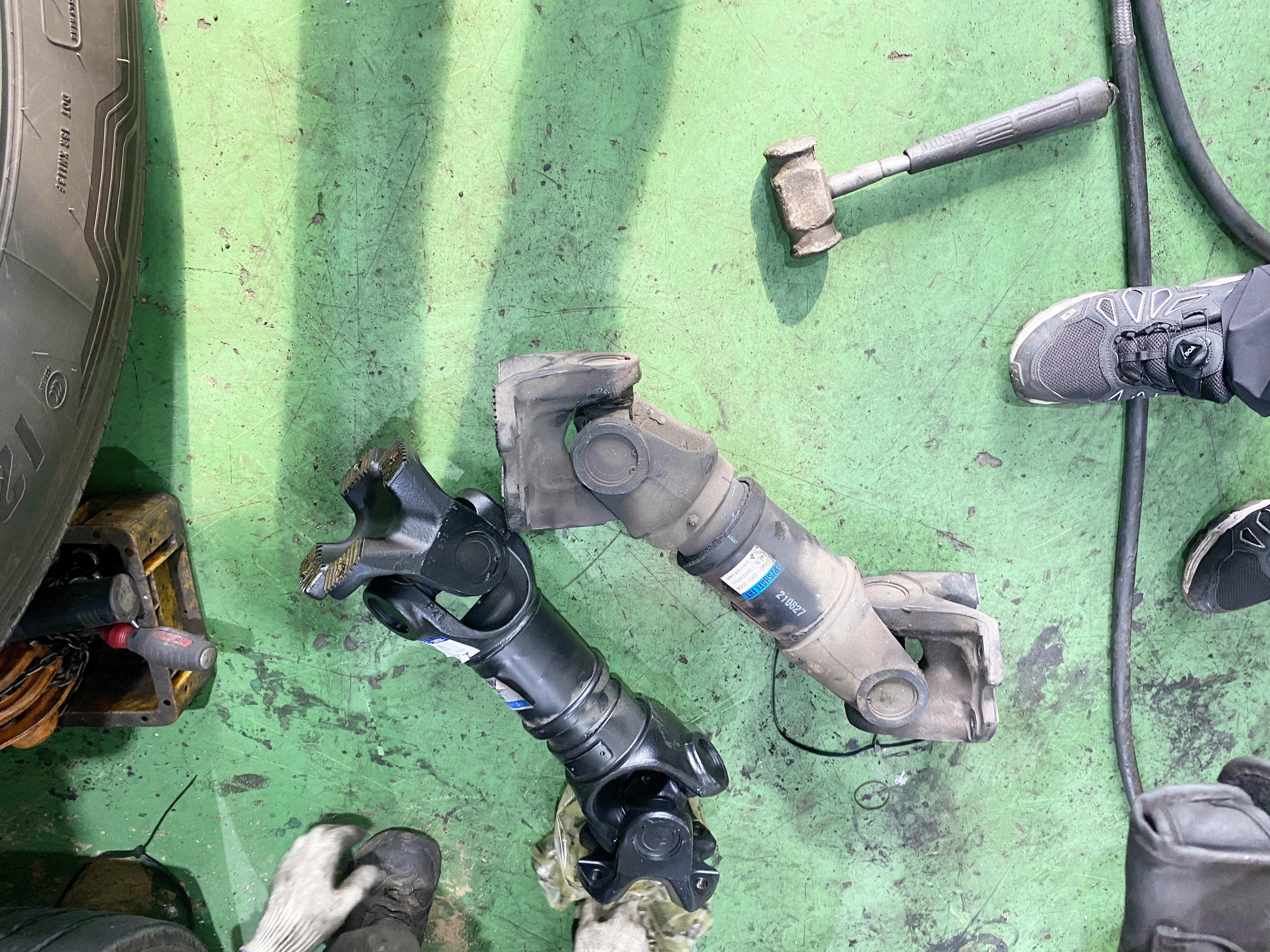 FR방식의 자동차라면 승용차고 버스고 트럭이고 크기만 다를 뿐 동력을 전달해 주는 부품입니다. 베어링이 나갔다고 하네요. 다행히 신품이 바로 있어 보증으로 교체합니다. 본격적인 휴가철이 시작되고 전반적으로 일거리가 줄다 보니 차를 고치러 오는 사람들이 많아 세 시간을 기다렸는데 시간이 촉박하여 에어컨 수리는 다음을 기약하기로 합니다.