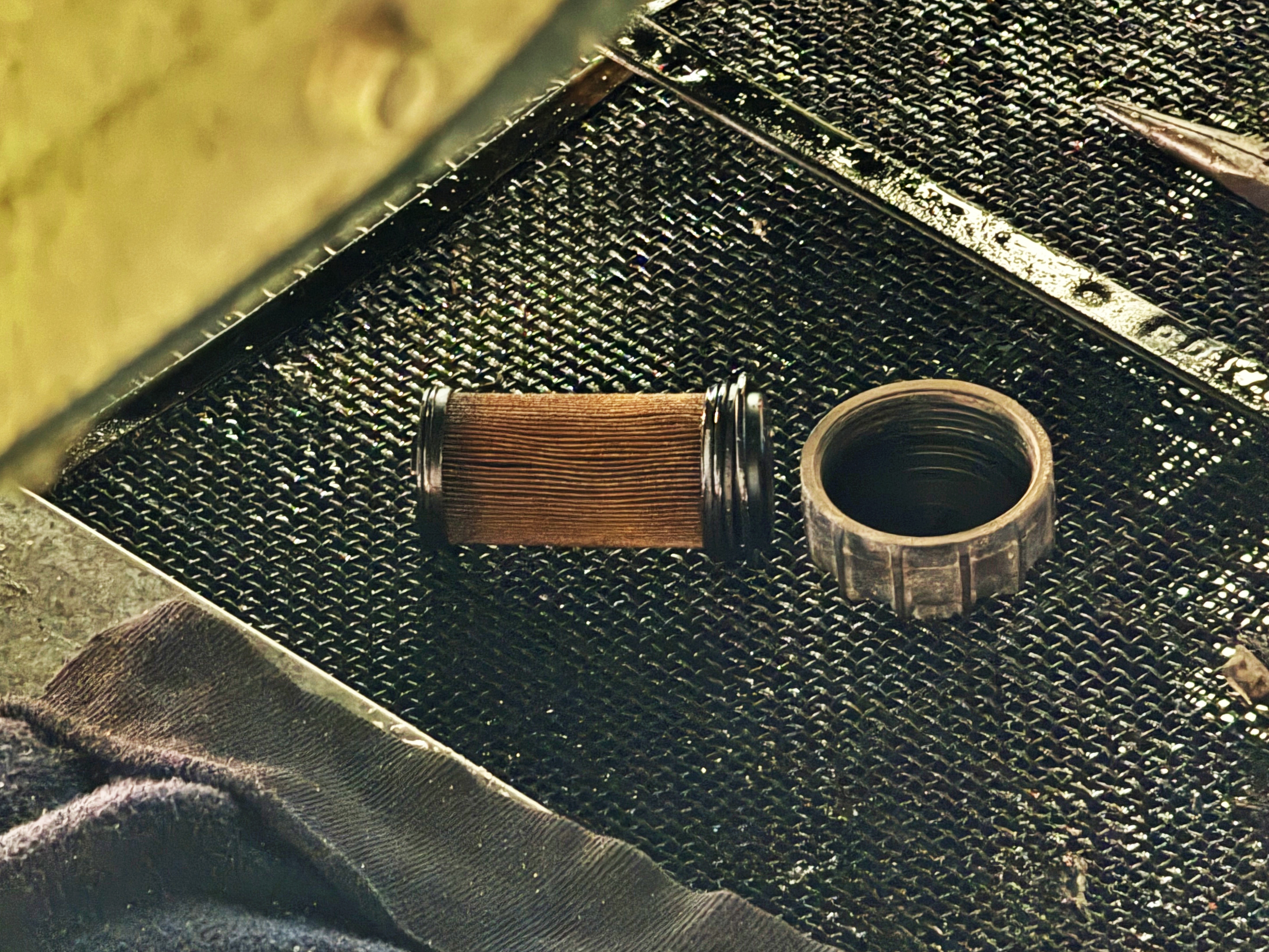 흔히 라바가스 블로바이가스 필터, 브리더필터라고 하는 물건인데 이것 역시 피아트 수입품이라 10만원이 넘어갑니다. 이것 역시 필터만 교체하면 안된다고 하고 새 필터와 함께 볼트도 새걸 끼워줘야 한다고 합니다. 이 필터에서 블로바이가스가 걸러진다고 하는데 이미 떡이 된 상태네요.