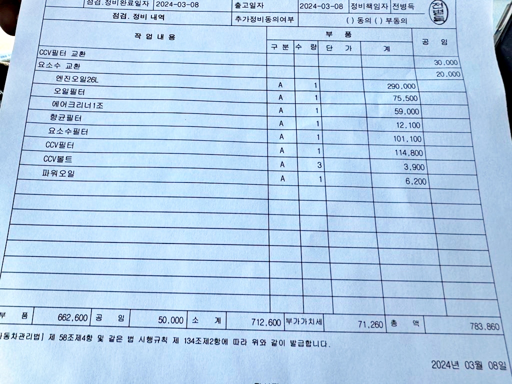 20만km 가까이 탔는데 겸사겸사 블로바이가스(라마가스) 필터라 부르는 CCV 필터와 요소수 메인필터도 교체했습니다. 요소수 필터의 경우 지난번 DPF 청소때 함께 교체하려고 하니 20만km 정도 타고 해도 된다고 해서 놔뒀고, CCV 필터 역시 지난 가을에 진행했던 겨울맞이 정비때 연료필터와 에어드라이필터를 교체할 때 빼먹고 이번에 함께 진행하네요.