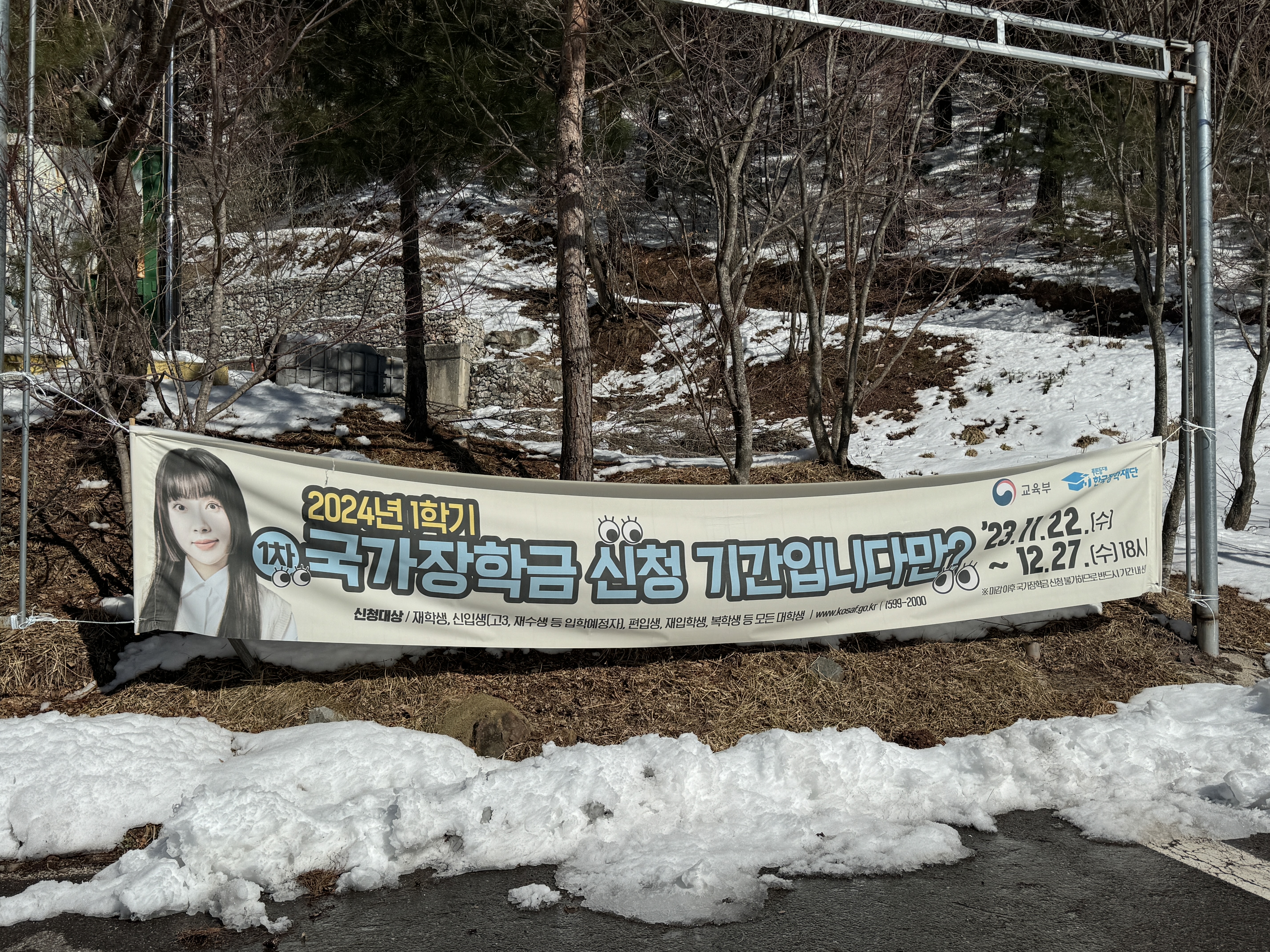 2024년 1학기 국가장학금 신청 기간을 알리는 현수막이 걸려있습니다만...