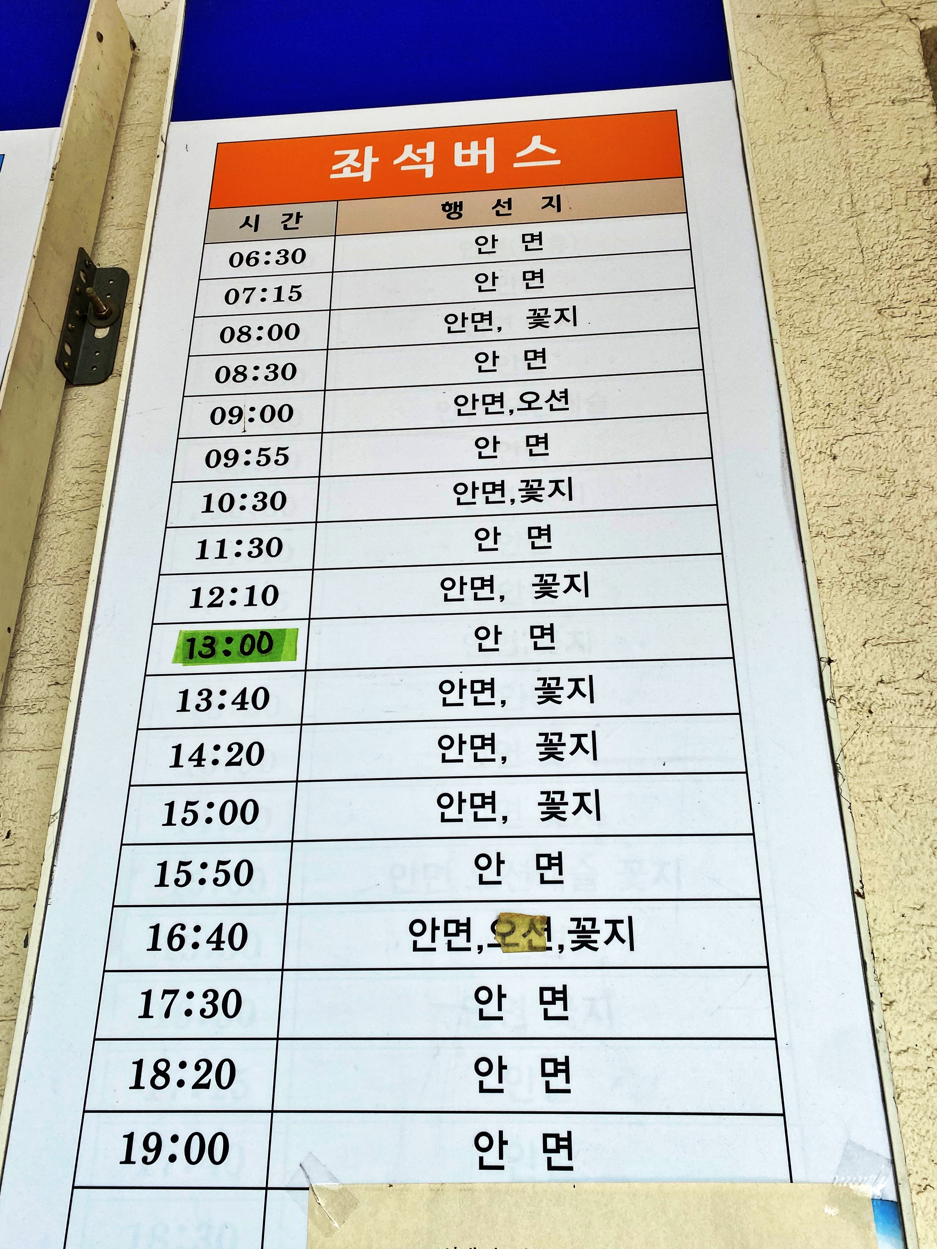 시외버스 시간표입니다.