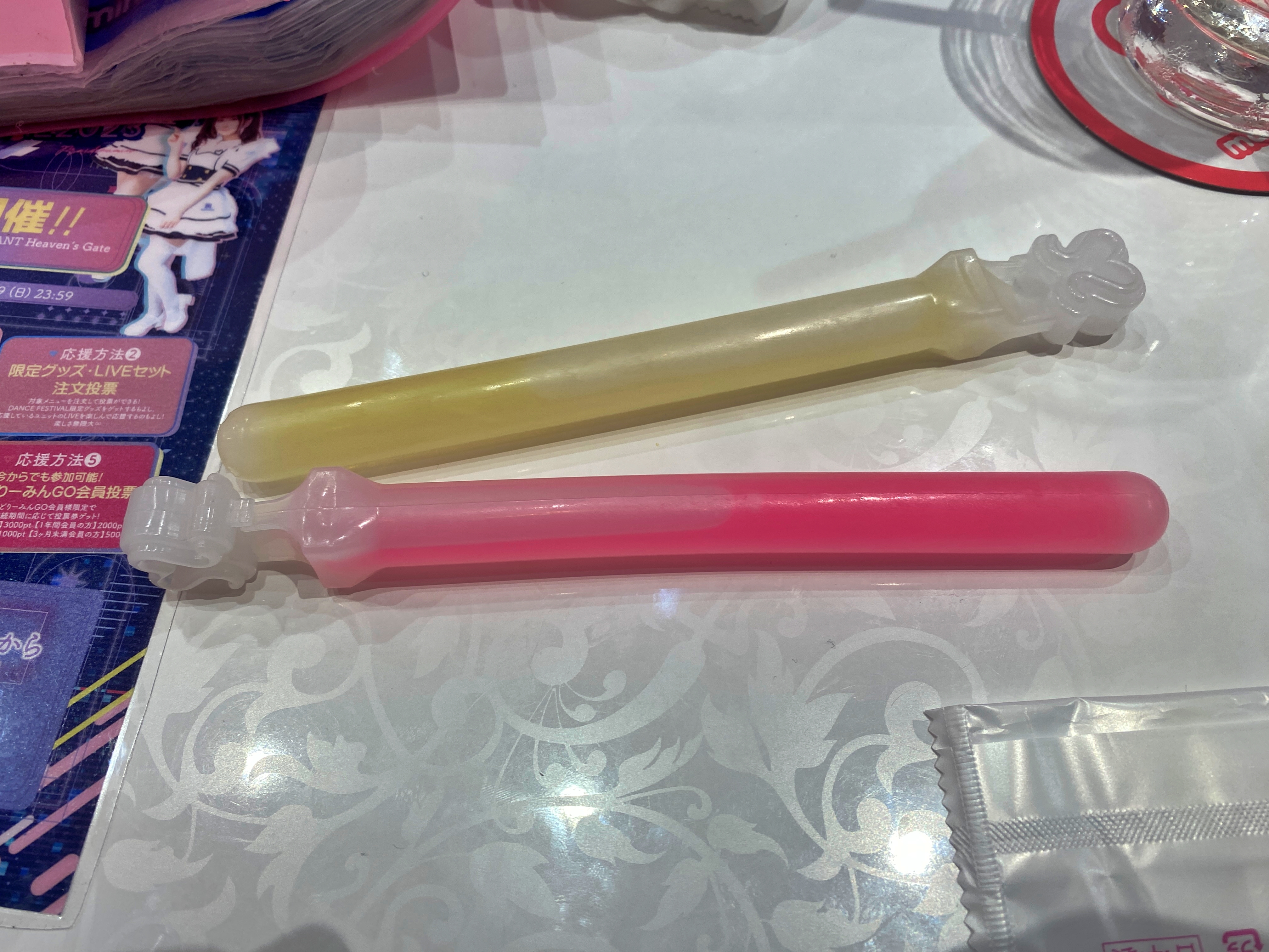 세트가 아닌 그냥 라이브 옵션을 추가하니 야광봉이 제공되지 않습니다만, 마침 옆에 혼자 계셨던 한국분이 야광봉이 많다고 건네주시네요. 일본에서 고등학교를 다녔고 어머니가 후쿠오카에 계셔 자주 왔다 갔다 한답니다. 역시 일본어도 현지인 수준으로 구사합니다. 저보다도 한참 어렸지만 작년 가을부터 꾸준히 다니면서 VIP까지 됐다고 하네요. 시스템이라던지 궁금했던 부분에 대해 많이 물어봤고 답을 얻을 수 있었습니다. 외국에 나와서 마음이 맞는 한국인과 친해지는 건 금방이었습니다.