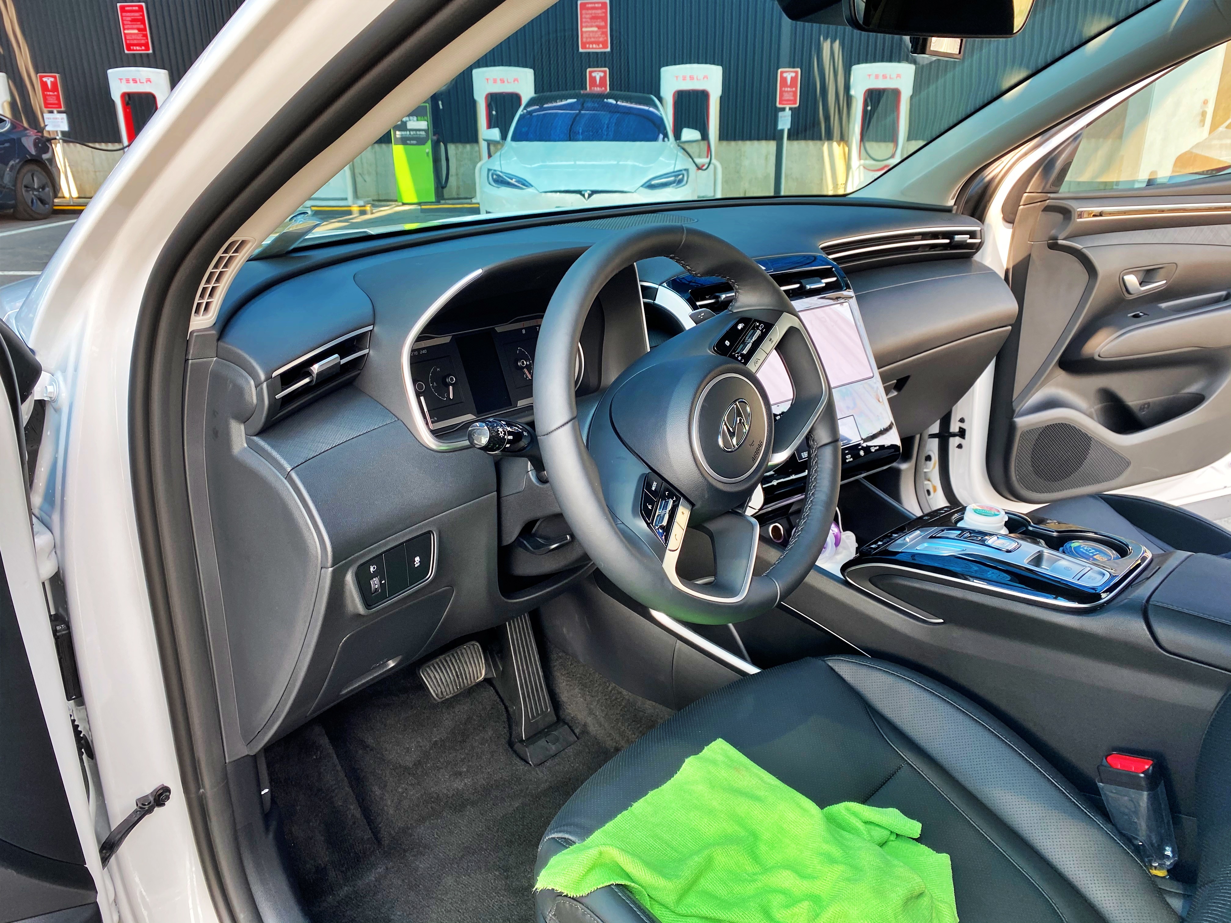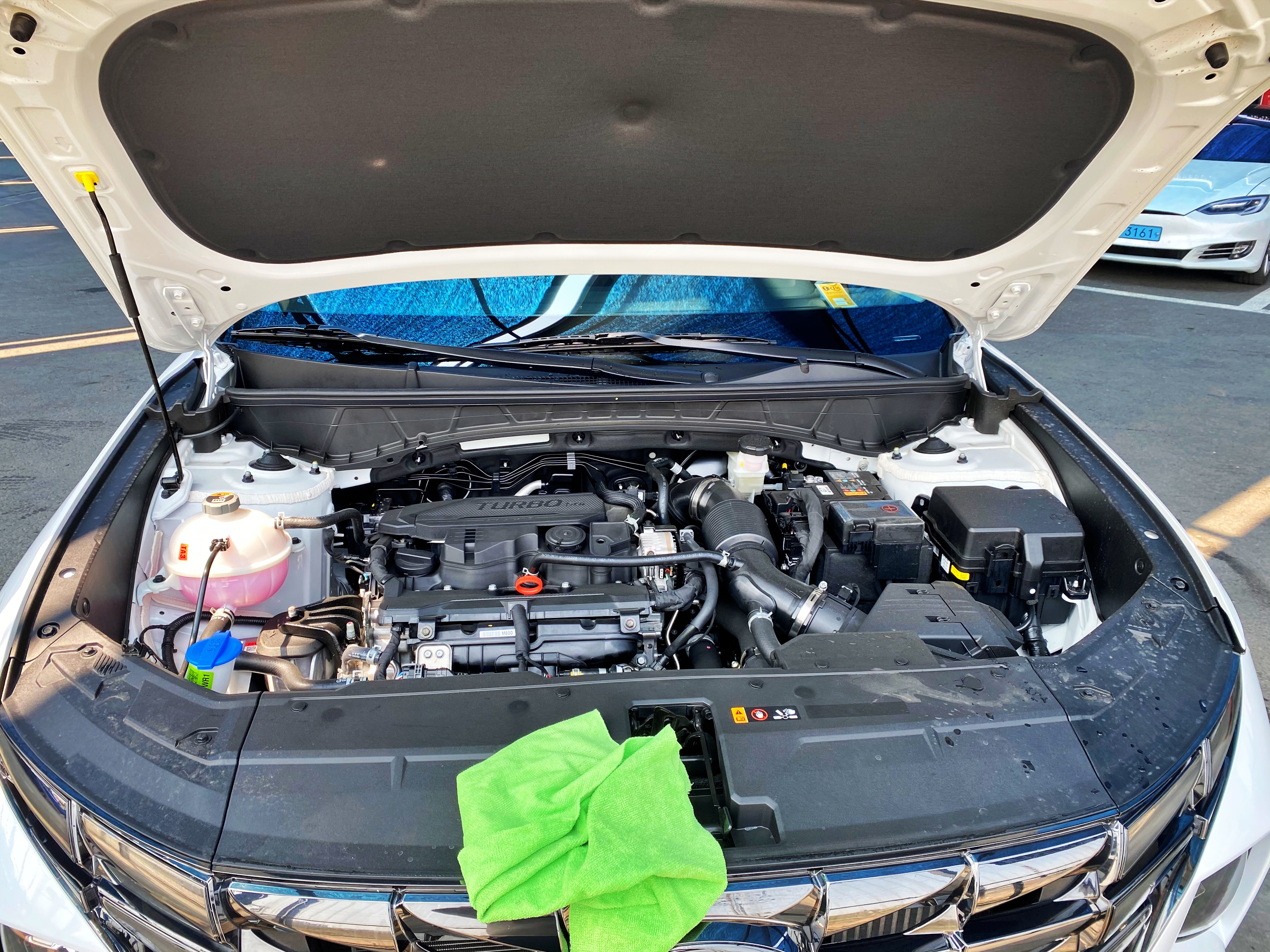 그래도 싹 불어내니 신차와 같은 상태입니다. 배터리 단자 커버 아래쪽으로 무언가 흘러내린것처럼 보이는 부분은 비닐 안쪽입니다. 자연적으로 떨어지지 않는 이상 비닐은 그대로 유지하려 합니다. 여러모로 천키로 좀 더 탄 투싼도 신차같은 컨디션을 오래오래 유지했으면 좋겠습니다.