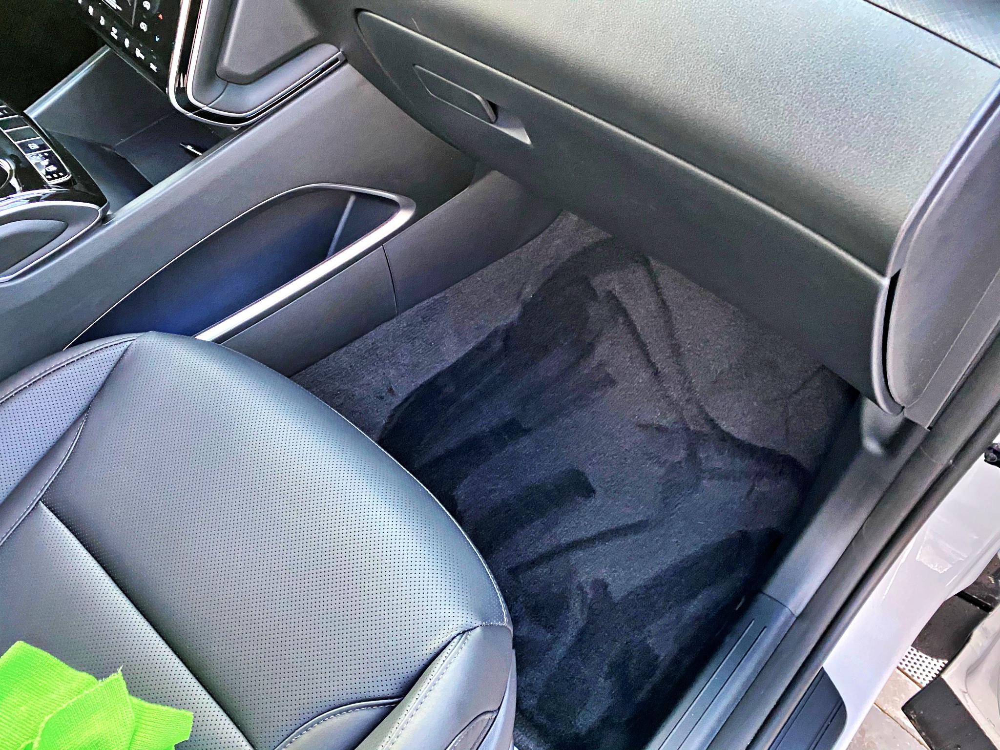 커버를 완전히 열면 안쪽으로 콤프레셔와 리페어리킷트가 보입니다. 그리고 수납함을 들춰내도 그리 깊지 않습니다. 그렇다 보니 자잘한 물건들만 여기 숨겨놓고 논슬립 재질의 트렁크 매트를 따로 구입하여 사용해야 합니다.