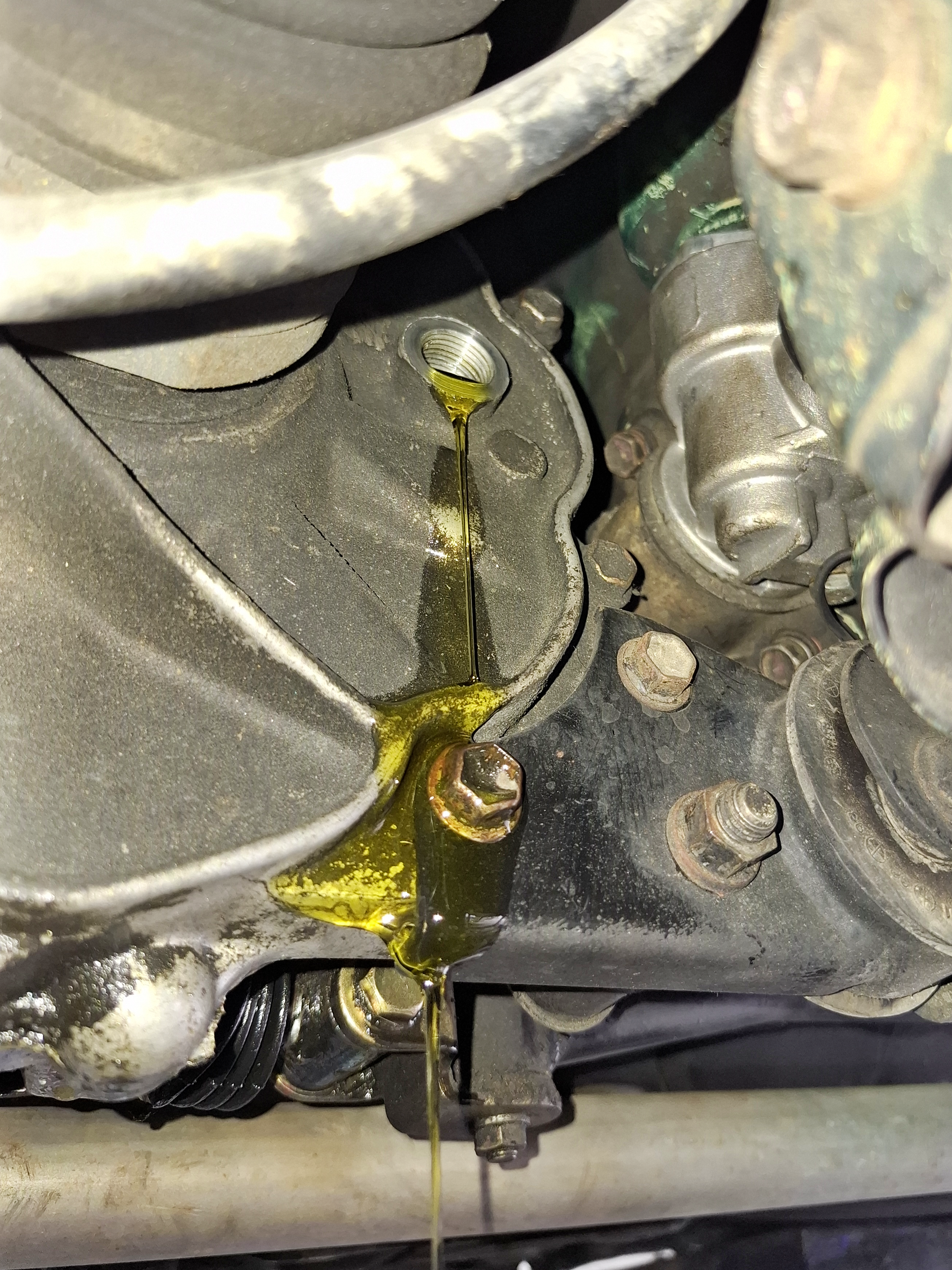 죄다 오밀조밀하게 모여있어서 아예 리프트로 들어서 위에서 아래로 꺼내려고 한다고 하시네요. 중간에 만지다 경화된 냉각수 호스가 찢어져서 호스도 교체하고 냉각수 역시 새로 집어넣었습니다. 거기에 이왕 올린 김에 얼마 타진 않았지만 약 10년간 묵었던 미션오일도 함께 교체하기로 했습니다.