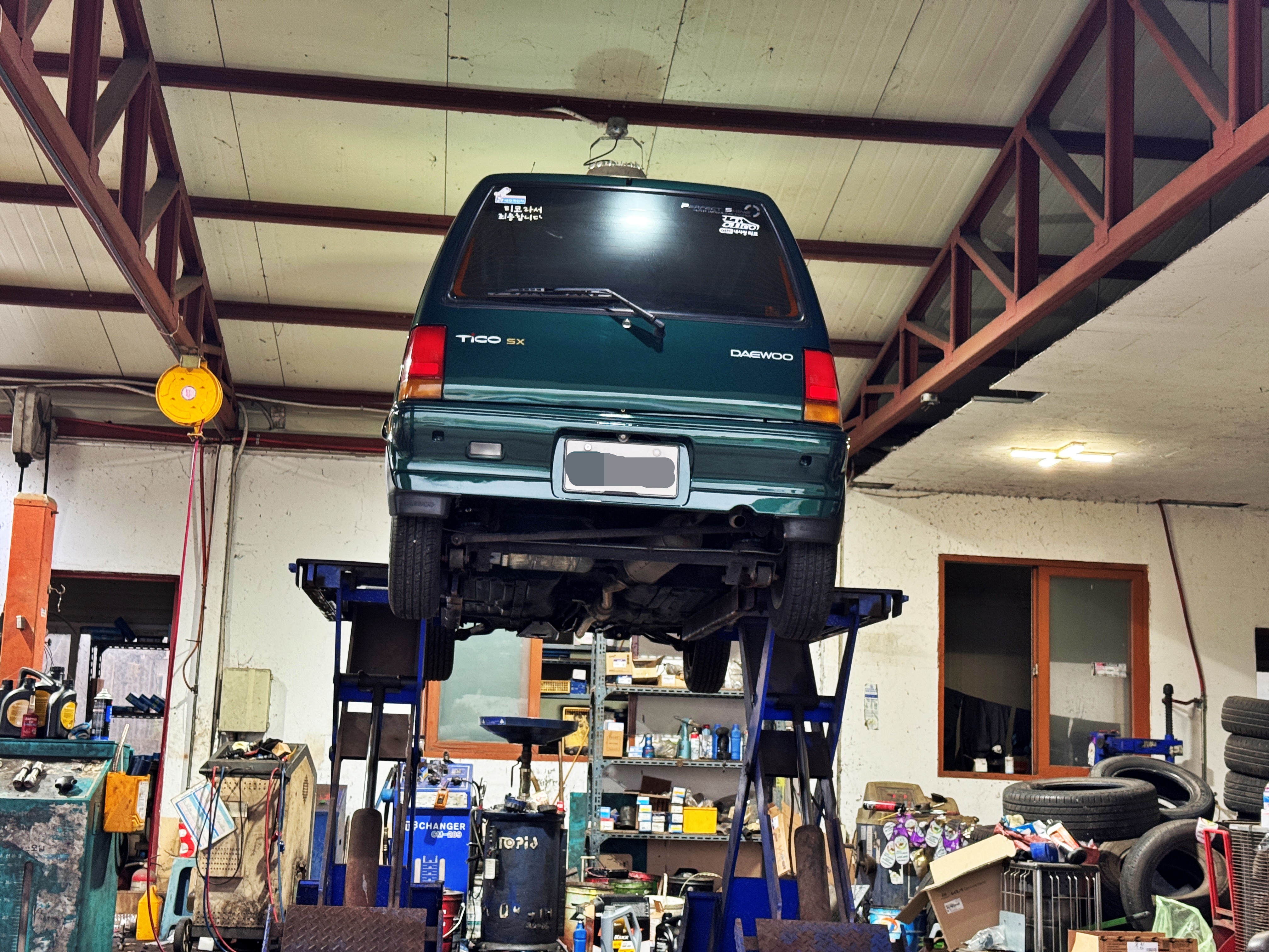 리프트 한켠에서 작업 대기 중인 티코입니다.