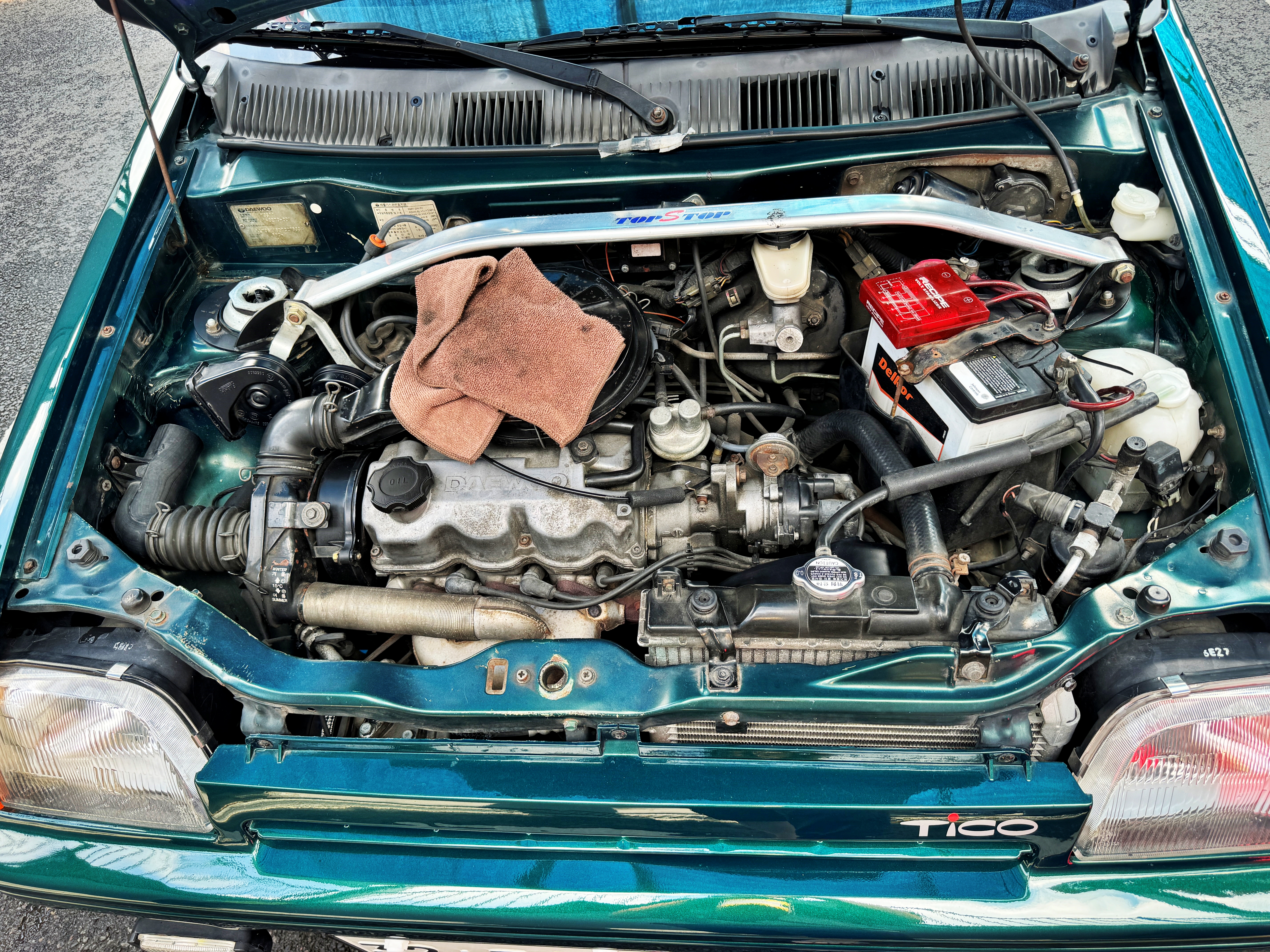 말 그대로 발전은 잘 됩니다만 벨트 폴리의 베어링이 나가 교체되는 상황입니다. 다행히 티코용 재생품을 다시 끼우니 배터리 경고등도 점등되지 않고 별다른 문제도 없었습니다. 그렇게 일주일 넘게 정비소 앞에 차를 세워두니 티코가 나름 지나가는 사람들의 흥미를 유발하여 정비소 간판 같은 역할도 꽤 했나 보더랍니다.