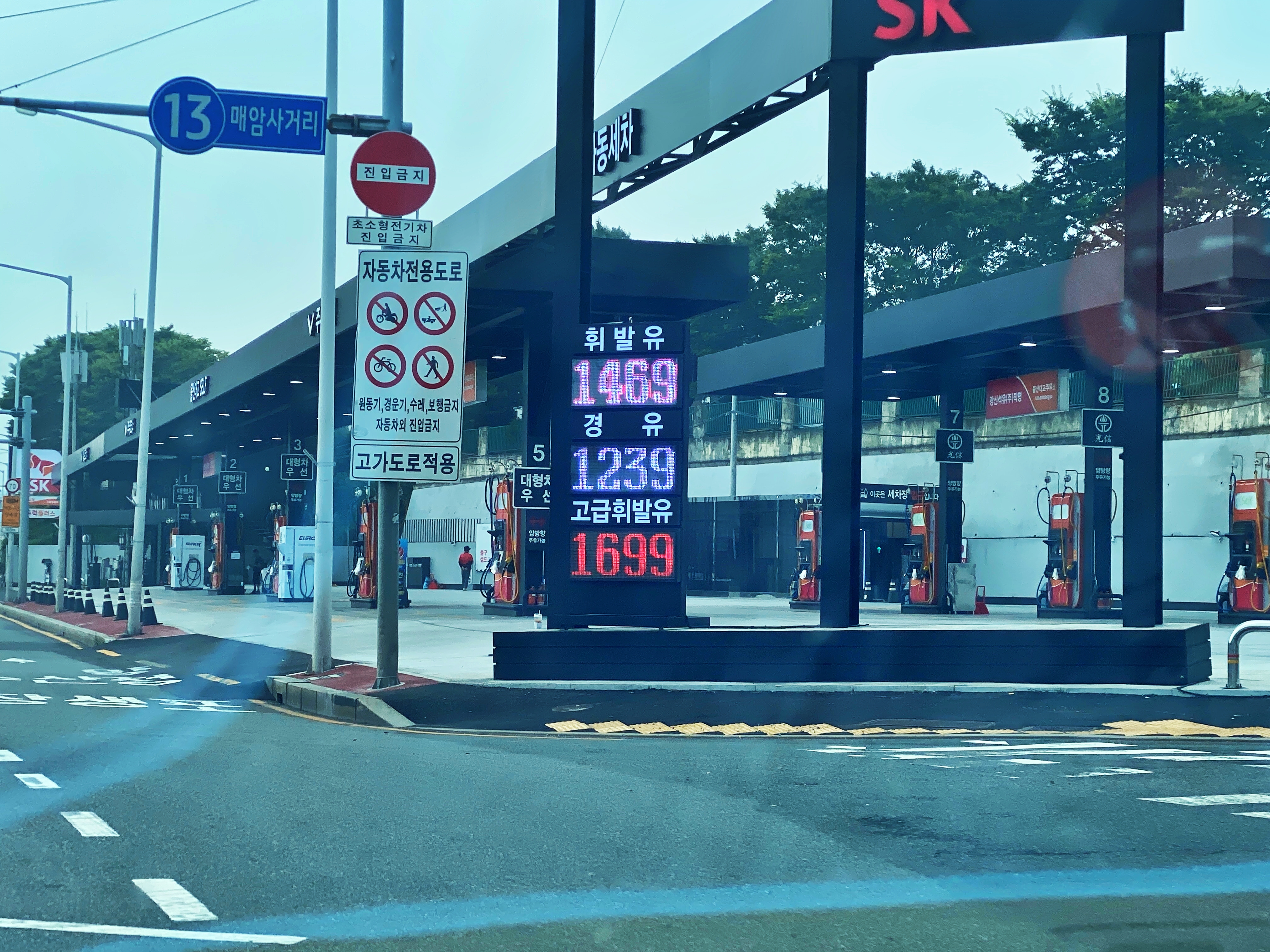 경유값이 무려 1239원. 애석하게도 화장실에 갈 겸 휴게소에서 반 정도 남은 기름을 가득 채우고 왔습니다.. 보통 저렴한 주유소라고 봐야 천 이백 원대 후반인데 이 가격은 진짜 기름통이라도 들고 가서 채워오고 싶었습니다.