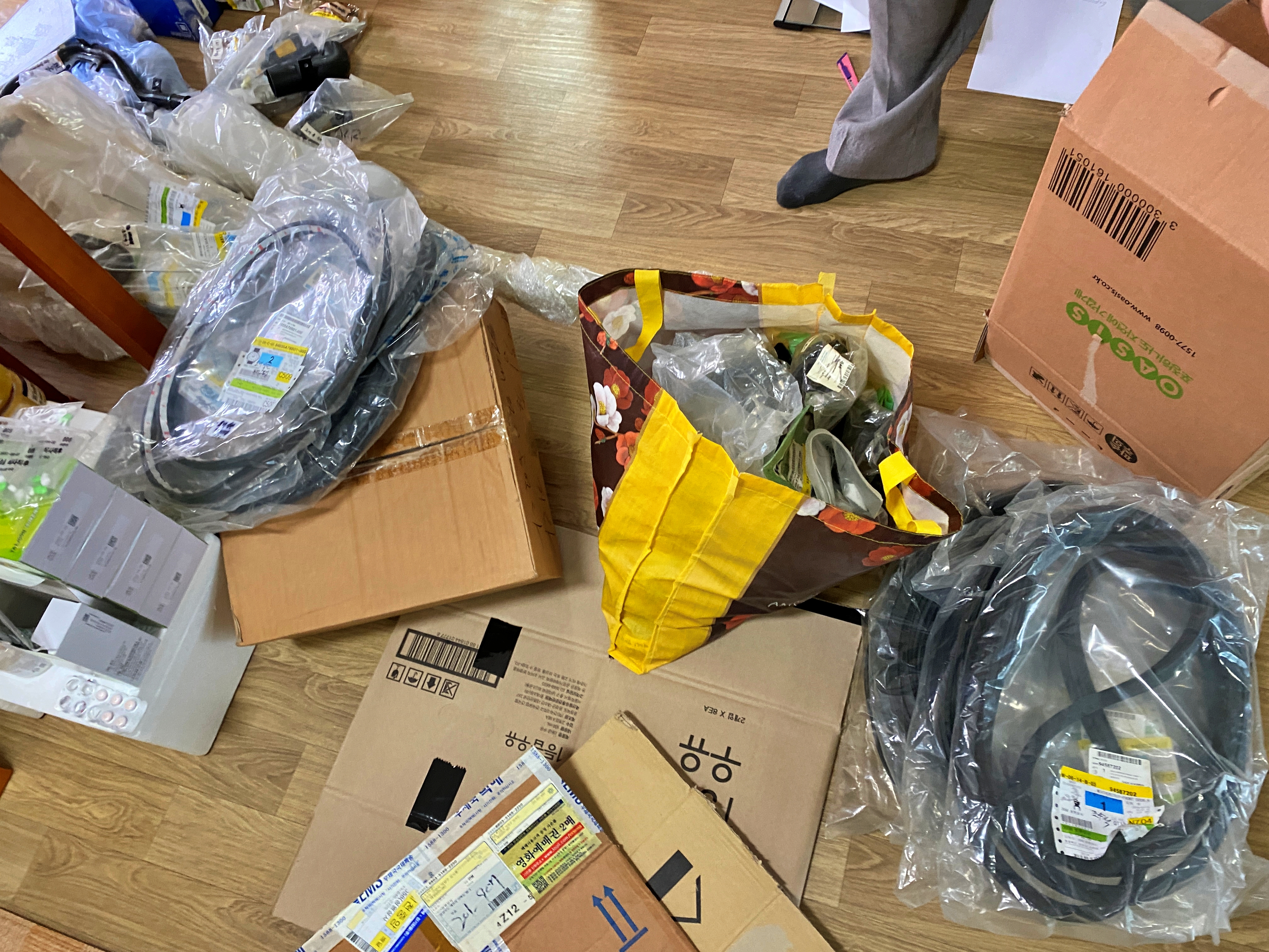 스타렉스 아저씨는 물건을 다 내려주고 다시 서울로 올라가시고, 친구가 합덕으로 와서 부품 정리를 도와줬습니다. 진짜 이런 부품도 나왔구나 싶은 부품들도 꺼내서 보여줬습니다.