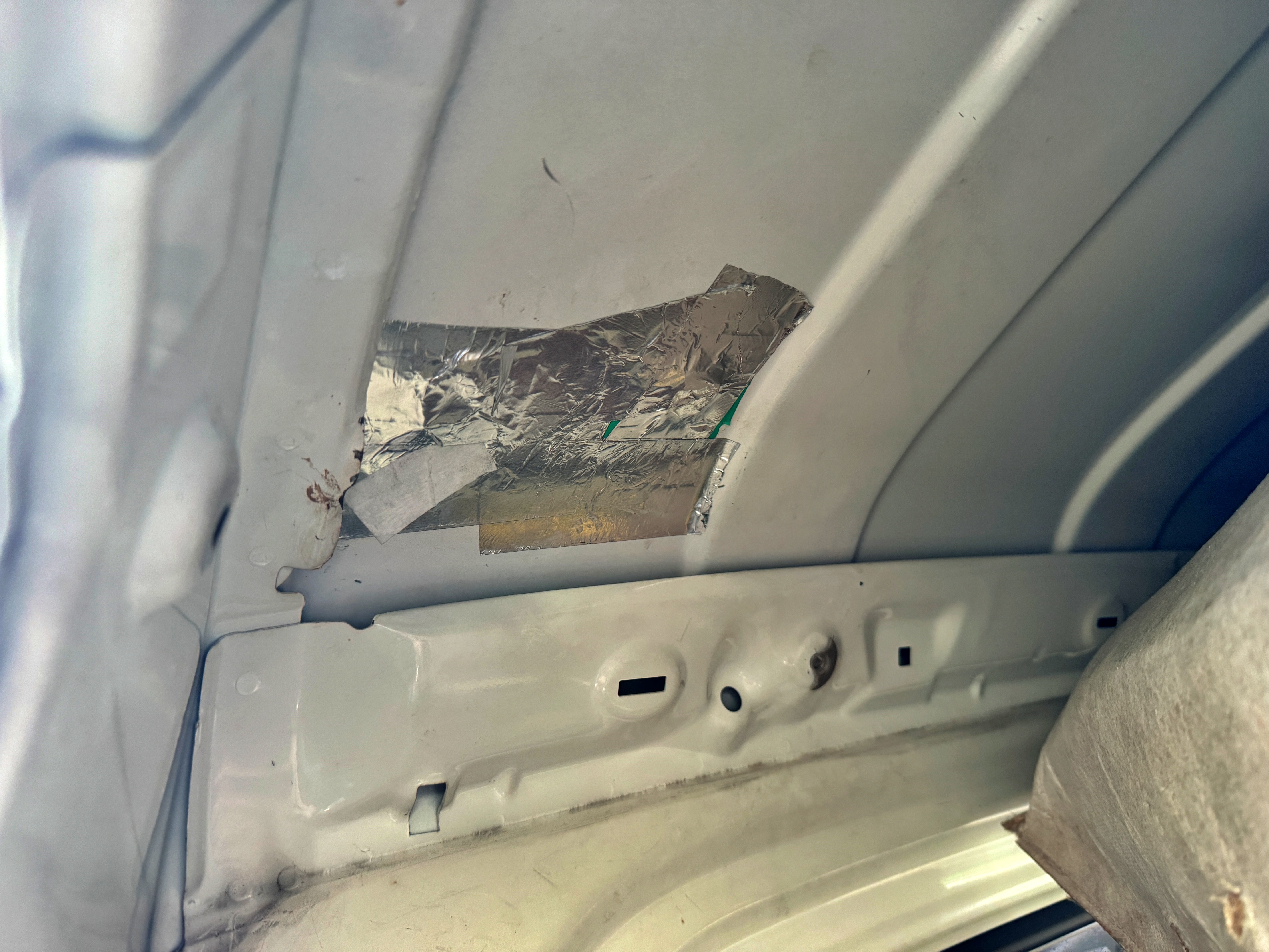 청테이프로 1차 마감. 그 위로 은박 테이프를 붙여줍니다. 헤드라이닝을 덮으면 아무런 티도 나지 않습니다.