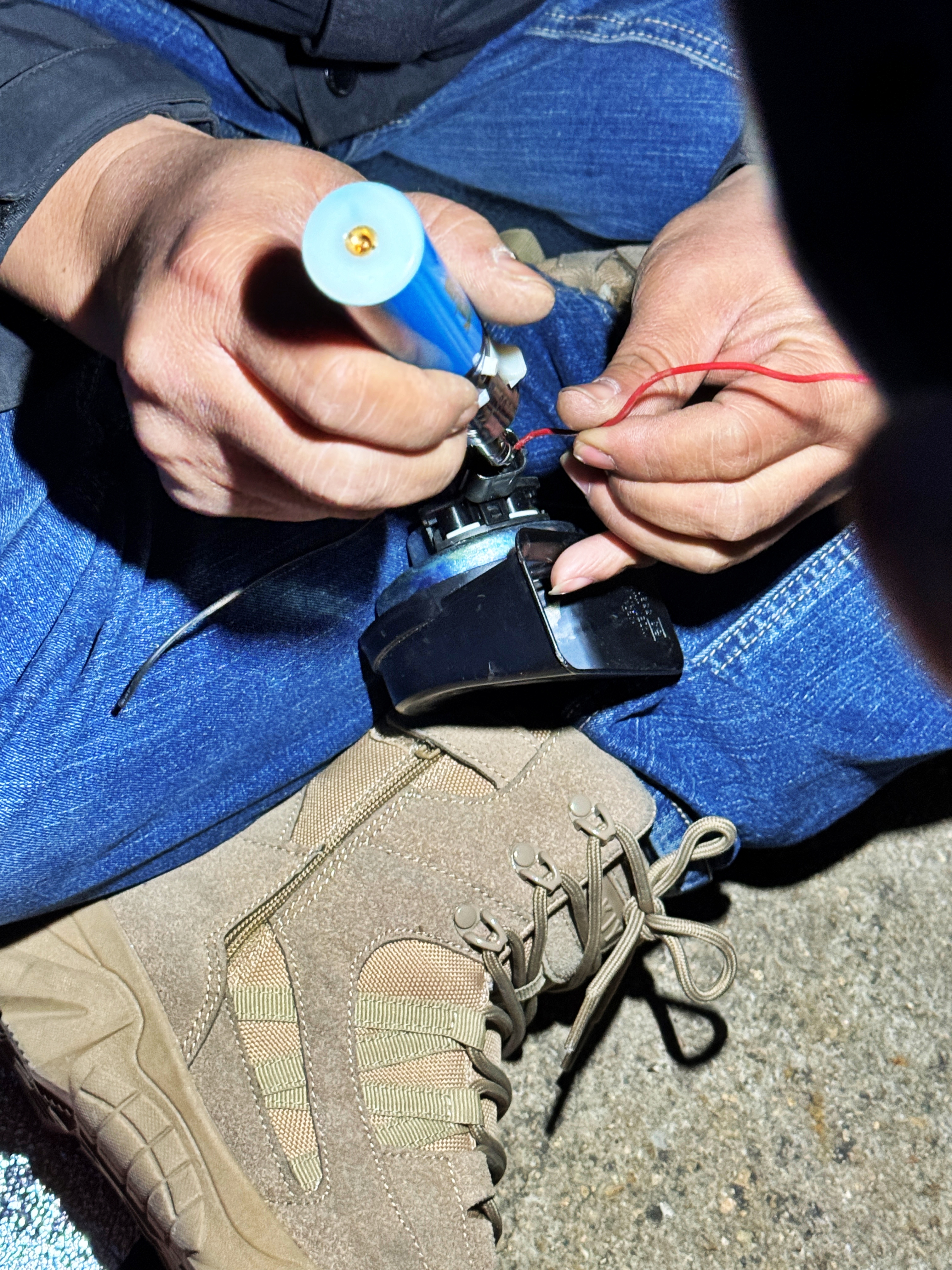 마침 라이터 기반의 휴대용 인두기를 가지고 다니시는지라 배선을 납뗌으로 이어줍니다.
