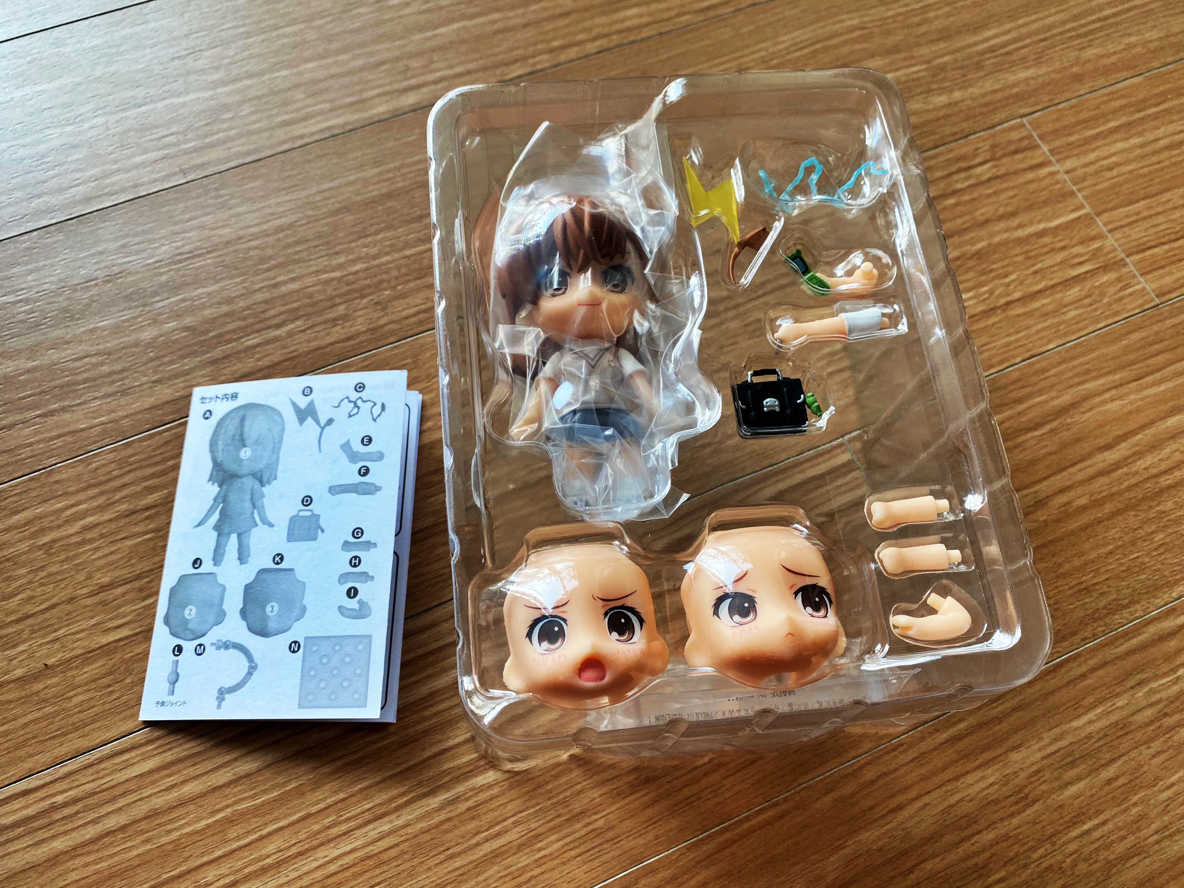 핸드폰을 들고 있는 손도 보이고요. 레일건을 쏘는 손과 프라즈마도 보이고, 가방도 보입니다. 그리고 더듬이처럼 삐친 머리카락. 바보털도 교체가 가능하네요. 참고로 넨도로이드의 파츠들은 같은 규격으로 제작되어 다른 캐릭터더라도 호환이 가능합니다. 고로 다른 캐릭터 파츠를 사용하여 색다른 느낌을 내도 됩니다.