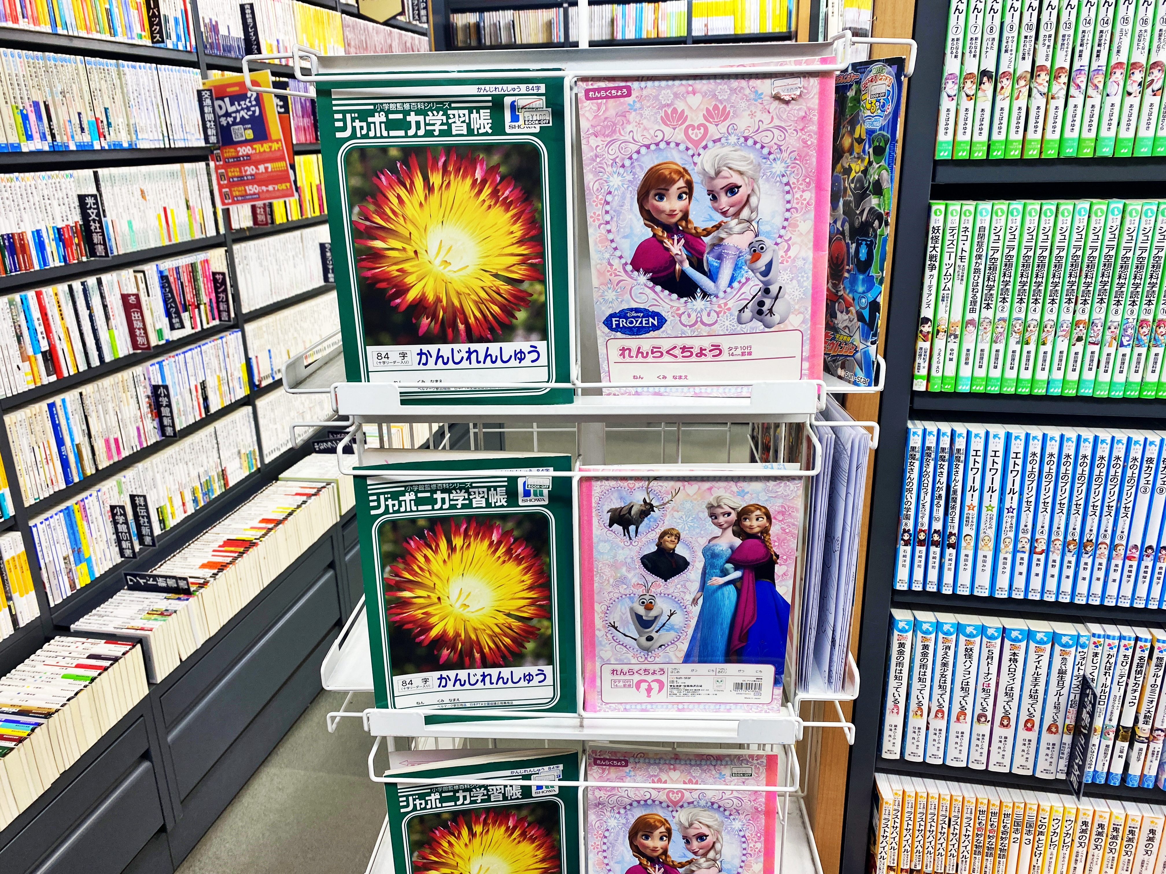 역사와 전통을 자랑하는 자포니카 학습장은 84자 한자공책. 그 옆에 겨울왕국 캐릭터가 그려진 공책은 10줄짜리 일반 공책으로 보입니다. 별 걸 다 팔긴 하네요. 북오프에서 별다른 소득 없이 하카타역 건물로 넘어갑니다.
